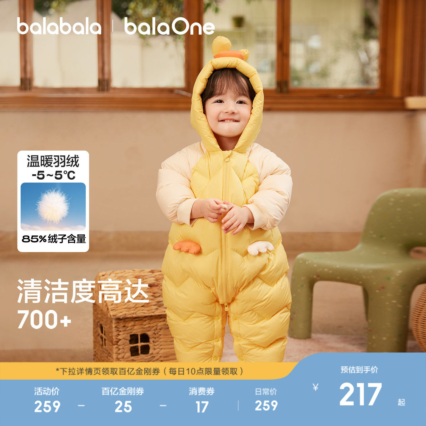 巴拉巴拉童装婴儿羽绒服连体衣外出宝宝衣服2025新款冬装哈衣爬服