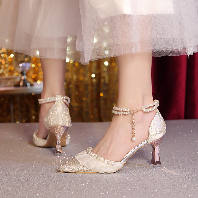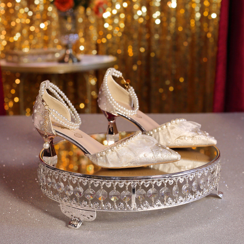 法式高跟鞋女2025秀禾新款婚纱两穿婚鞋新娘鞋配裙子尖头伴娘单鞋