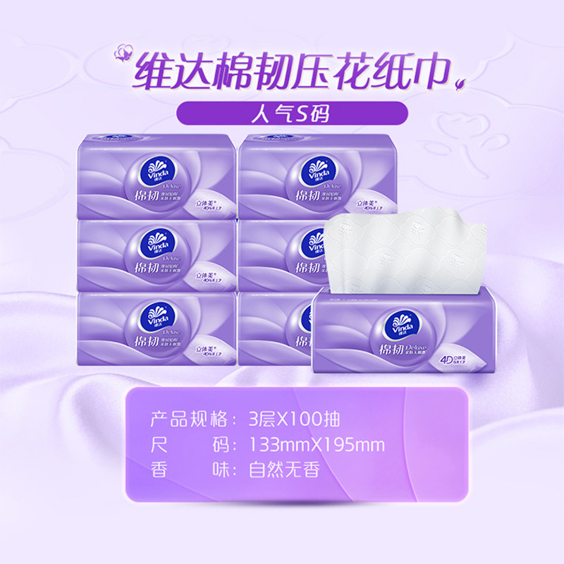 维达抽纸棉韧3层100抽10包家用实惠装餐巾纸卫生纸面巾纸抽纸纸巾