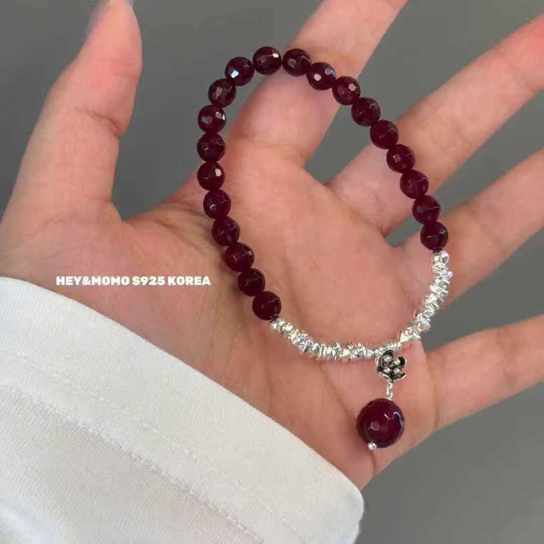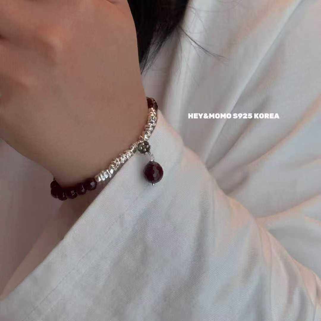 12.15直播韩国momo银饰石榴石吊坠碎银子串珠手链925银