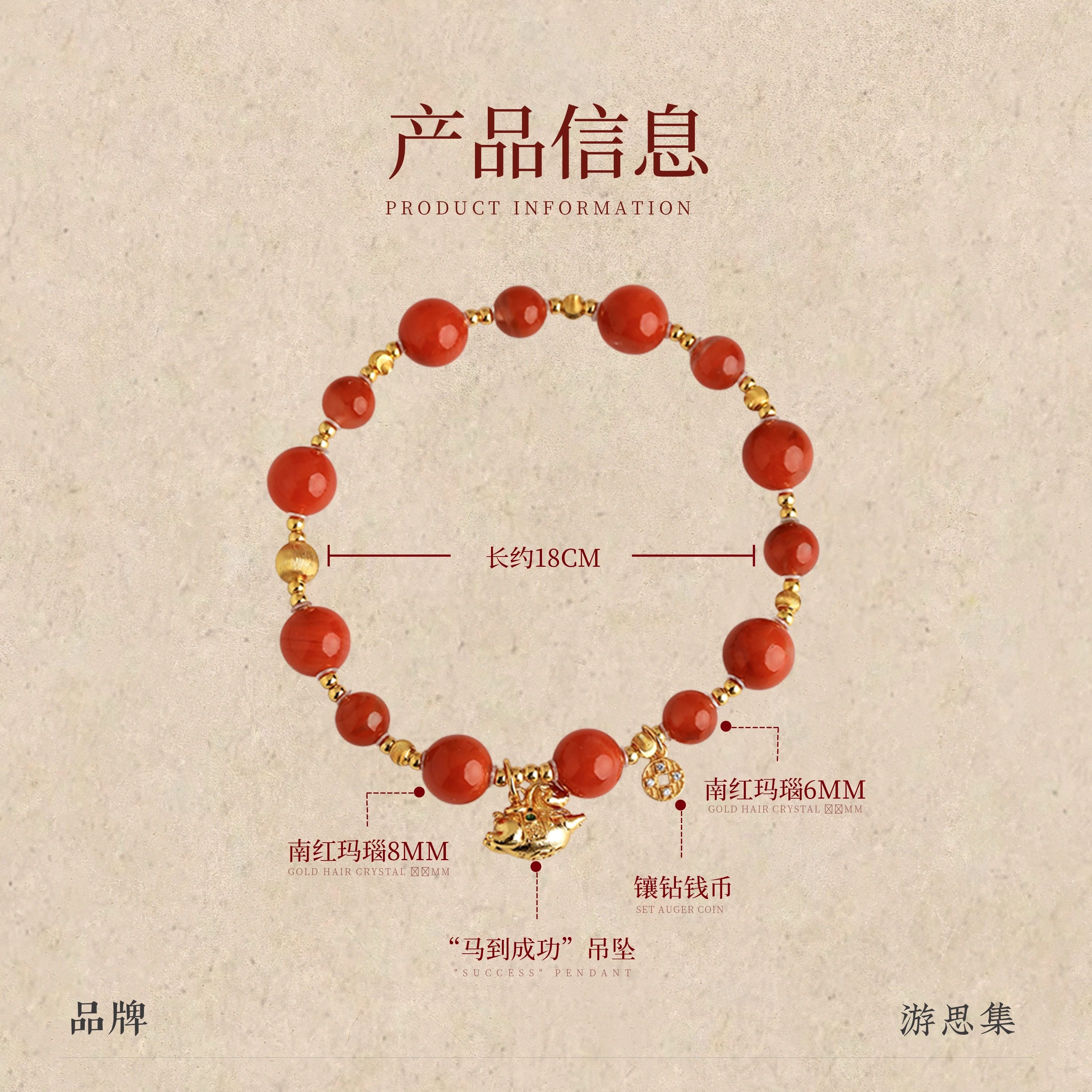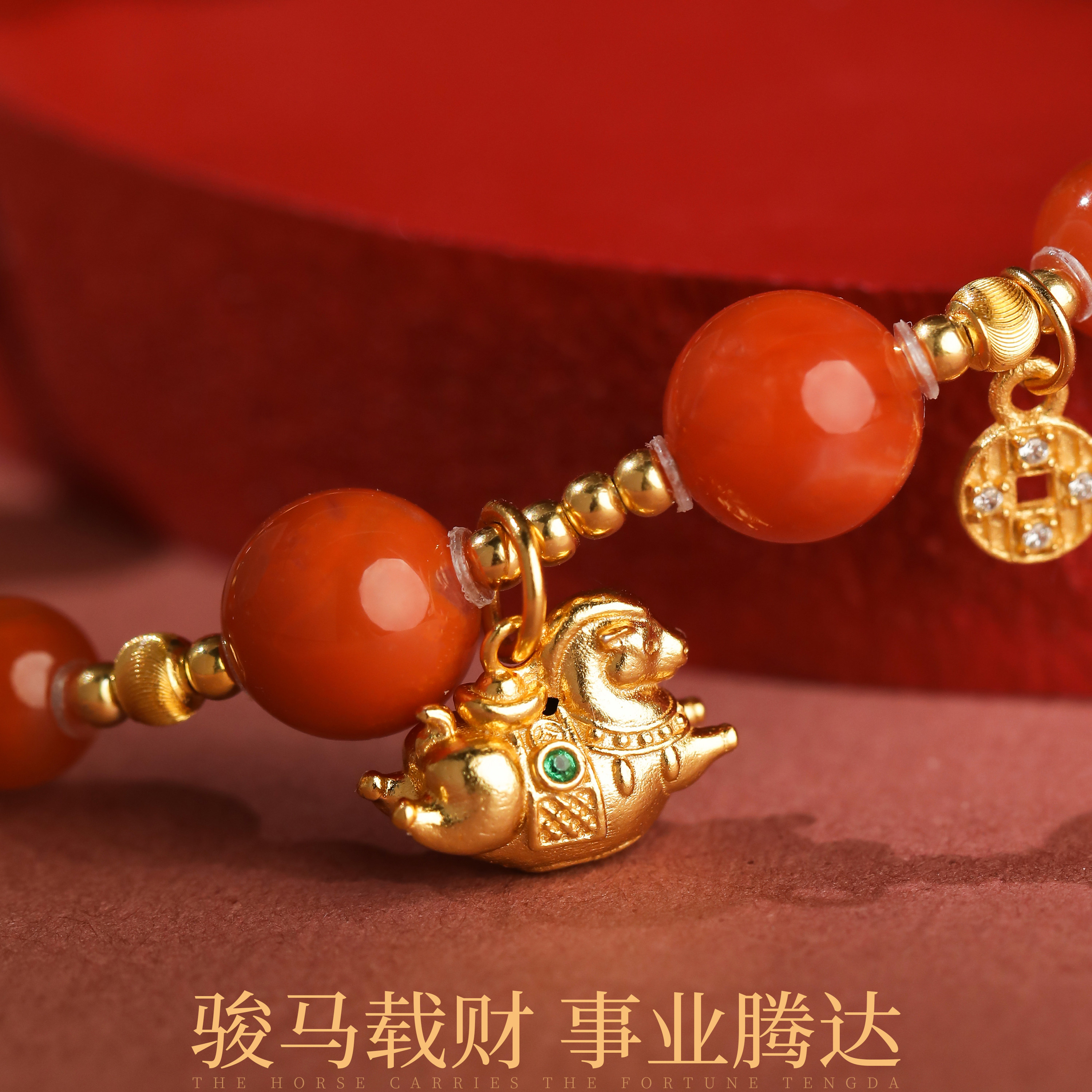 天然原石南红玛瑙手串链满天星本命年生肖马吊坠新中式情侣送礼
