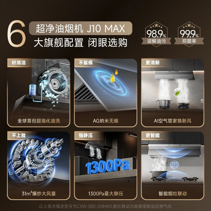 【重磅新品】万家乐超净抽油烟机J10系列魔净厨房家用燃气灶套装