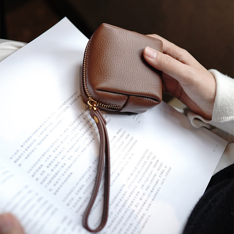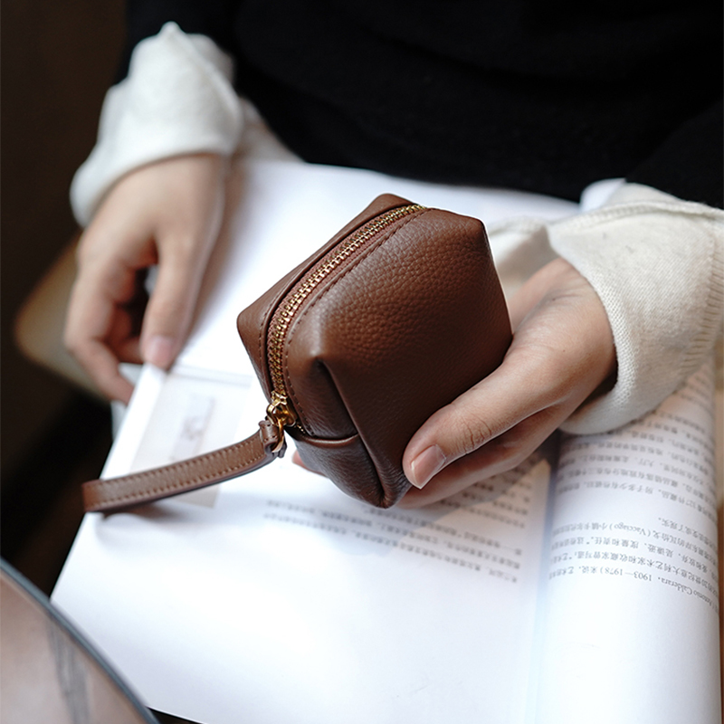 复古便携超薄口红包小众植鞣皮质手拿迷你零钱收纳包日式简约卡包