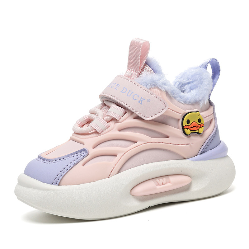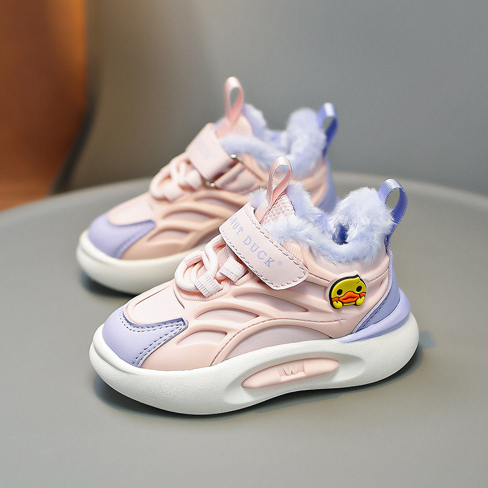 小黄鸭女童运动鞋加绒保暖男童大棉鞋2025冬季新款宝宝二棉儿童鞋