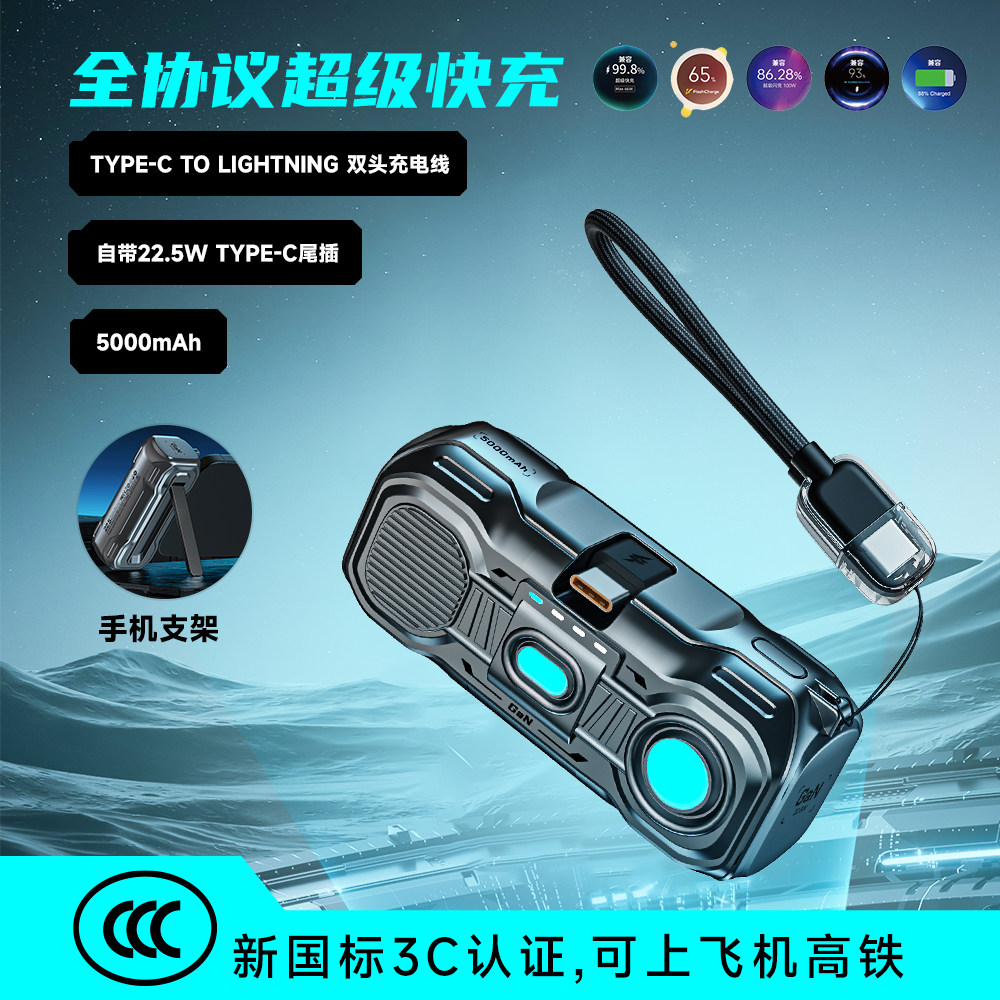 【3C认证充电宝】品胜胶囊充电宝2025新款自带支架小巧便携快充官方旗舰店正品17适用iPhone16华为苹果15