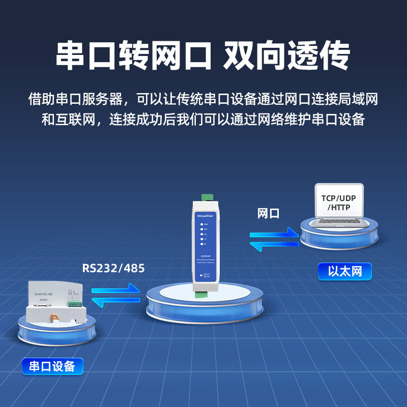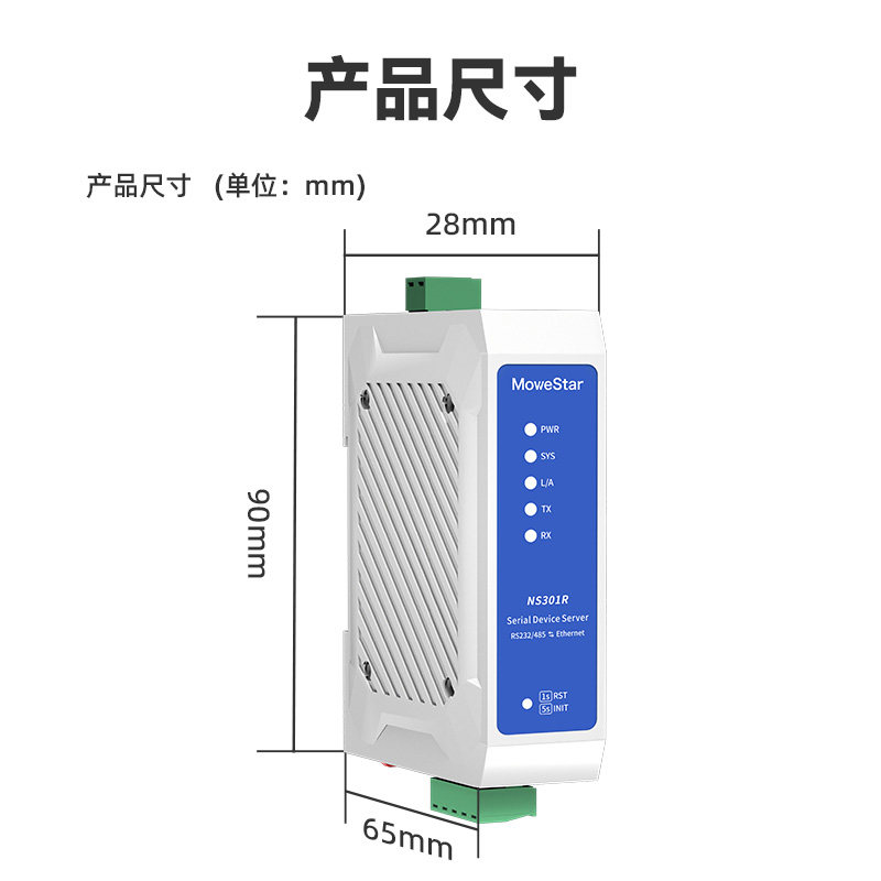 【MoweStar】移星工业串口服务器RS232/485转以太网转网口RJ45串口Modbus转TCP导轨式通讯模块网关NS301R
