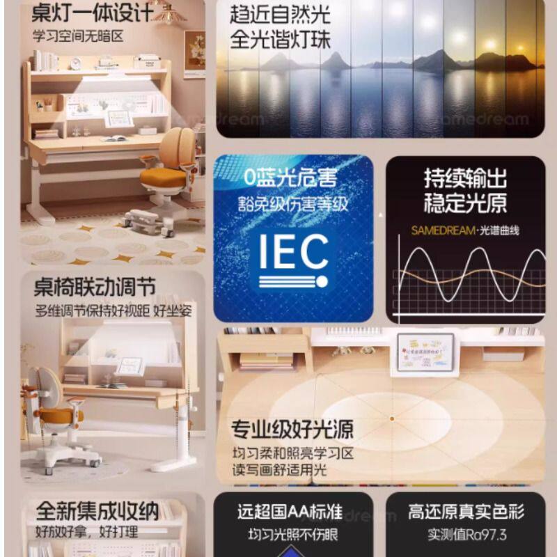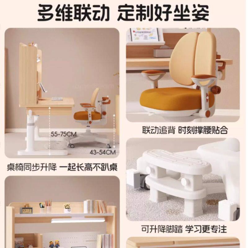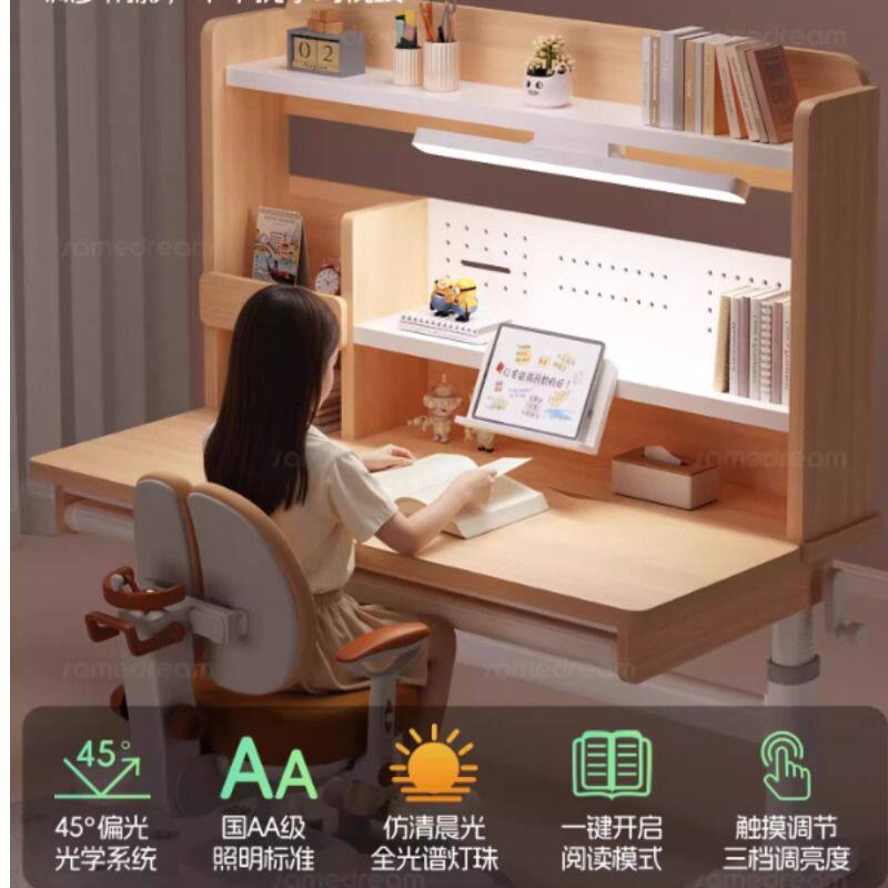 三梦儿童学习桌可升降家用小学生写字桌子实木书桌课桌椅套装坐姿