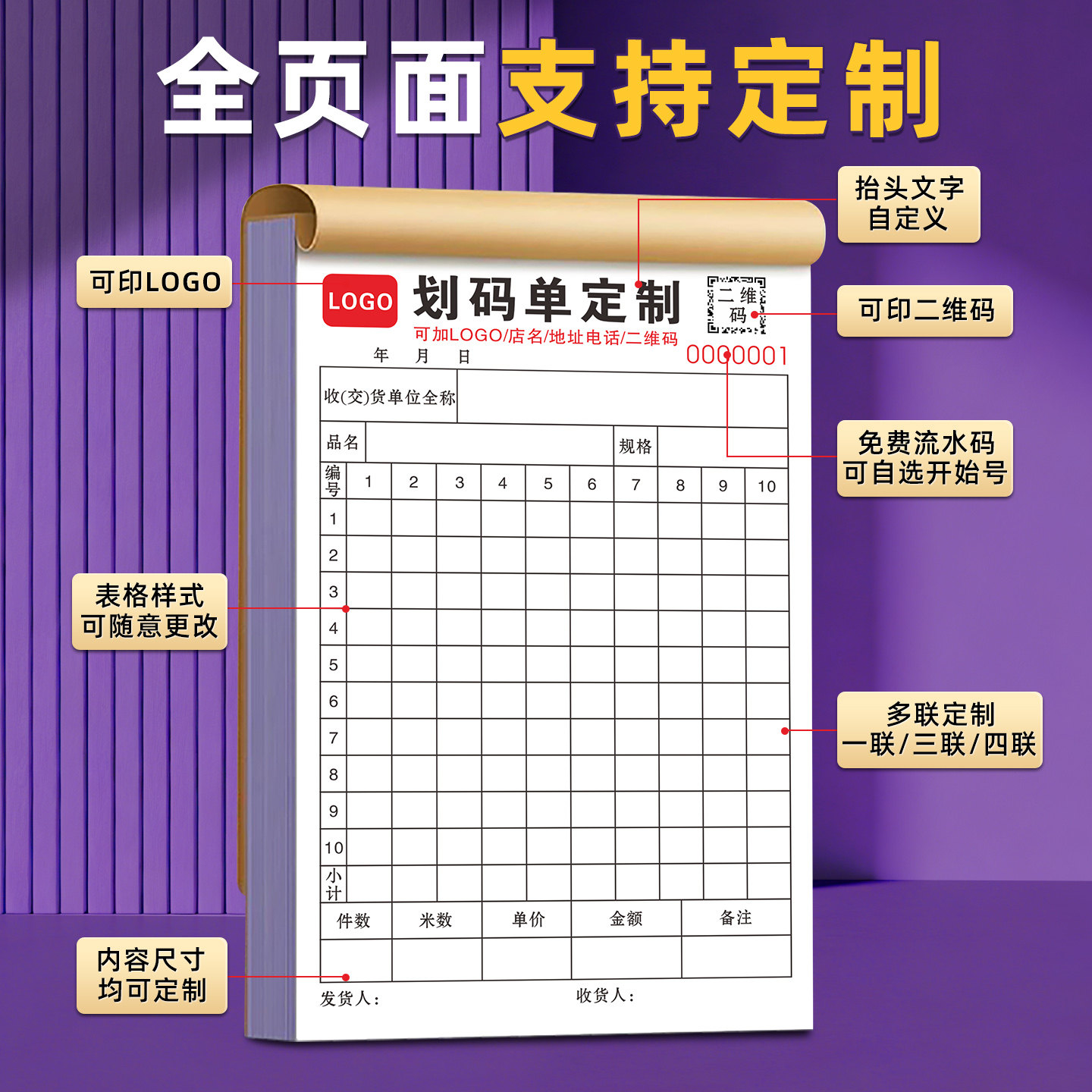 码单本定制二联纺织品出库销售材料清单布匹发货细码单表仓库明细入货服装收货单三联磅码单产品记码单划码单