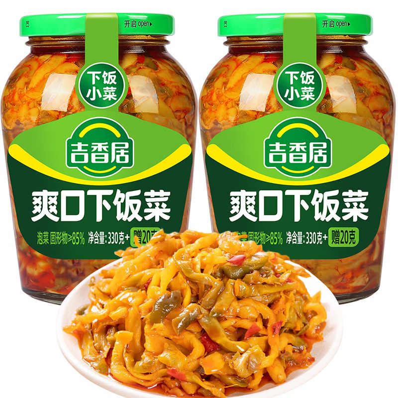 【2瓶装】350g吉香居榨菜下饭菜豇豆酸菜酸豆角泡菜香辣三丝菜芯