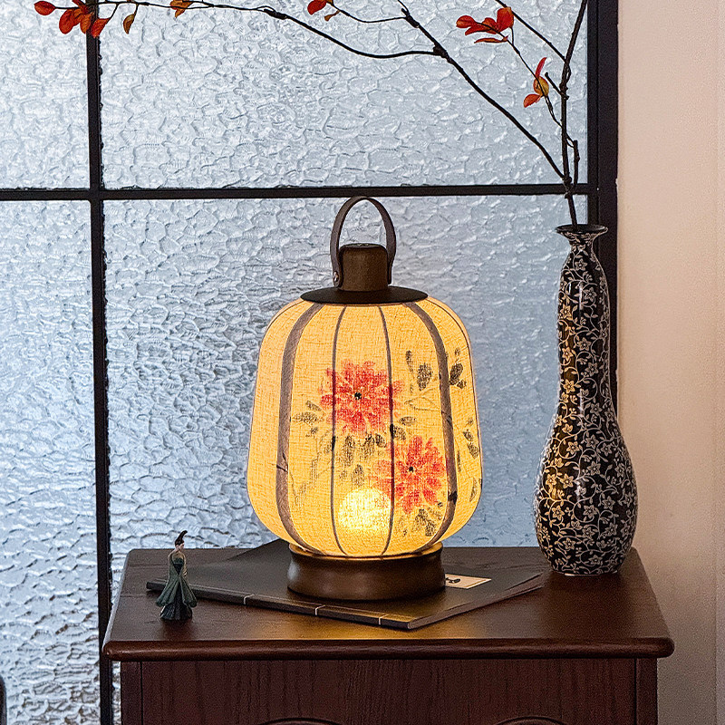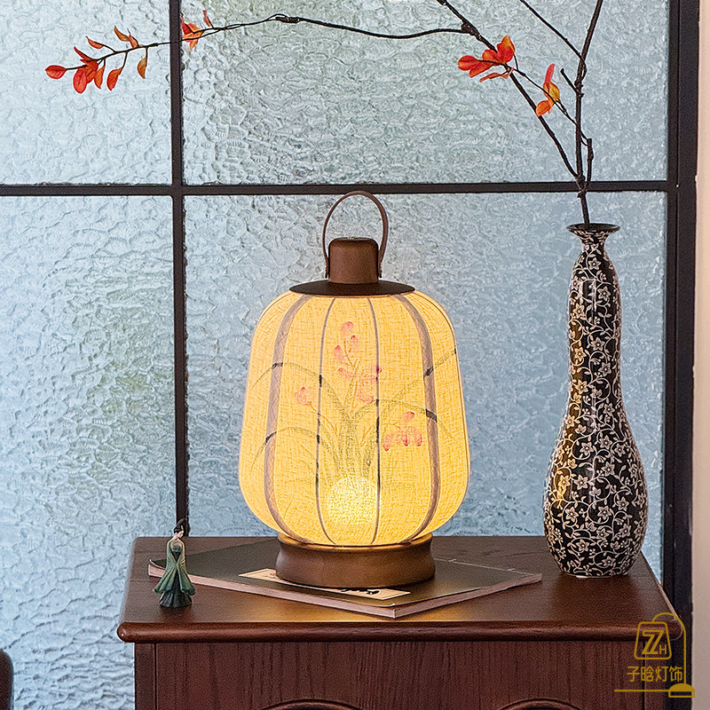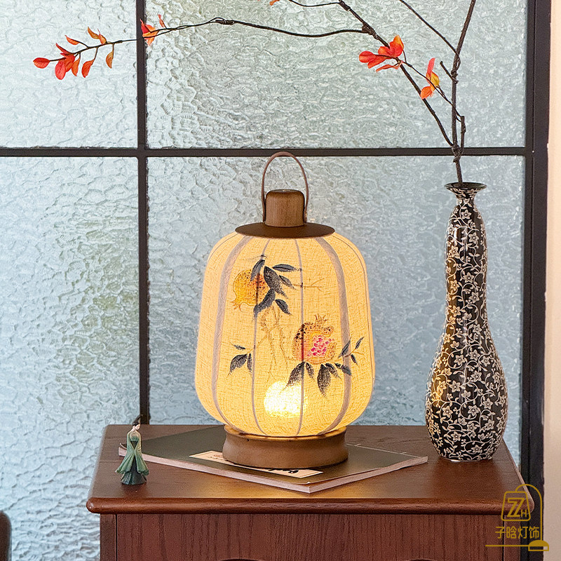 宋代美学新中式复古手绘灯笼茶室禅意书房卧室床头氛围手提台灯