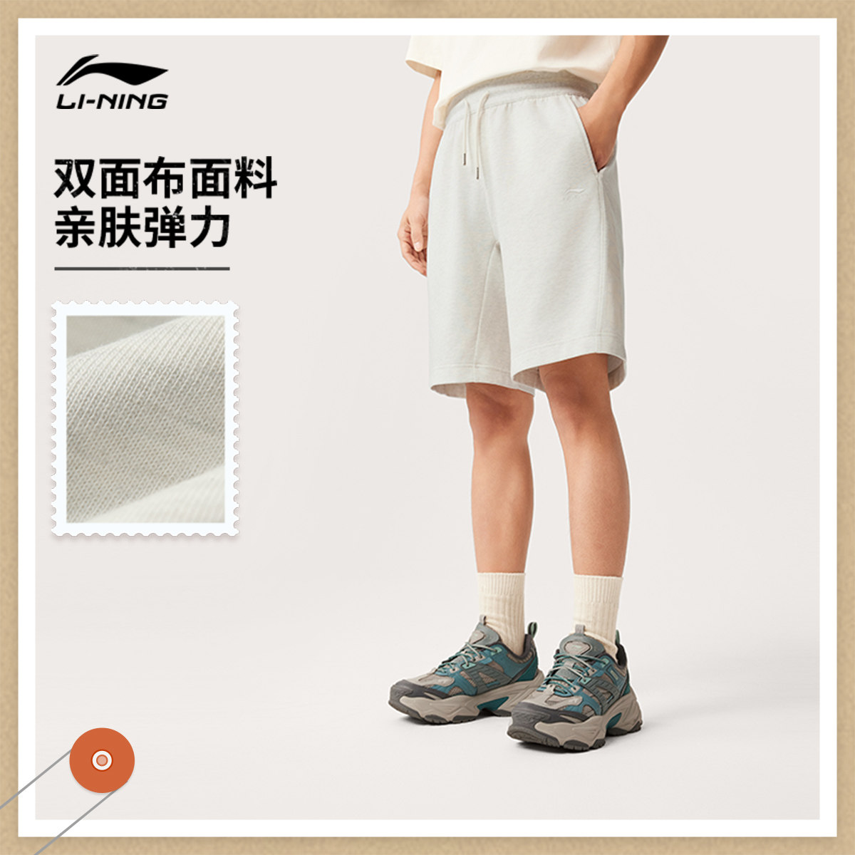 李宁短裤男士夏季新款潮流运动短裤透气宽松裤子针织印花运动裤男