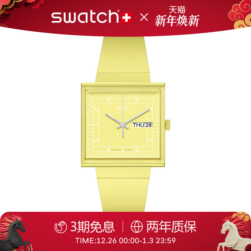 Swatch斯沃琪瑞士WHAT IF小方表植物陶瓷学生彩盘手表新年礼物