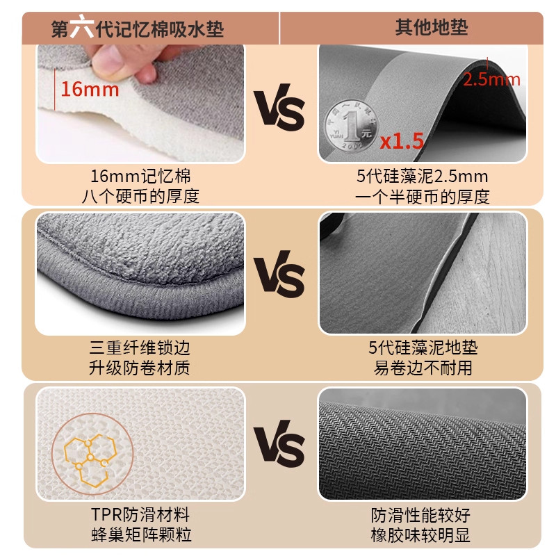 硅藻泥吸水地垫浴室卫生间门口进门入户防滑脚垫子洗手间厕所地毯
