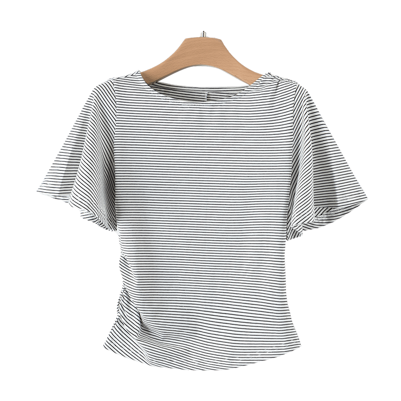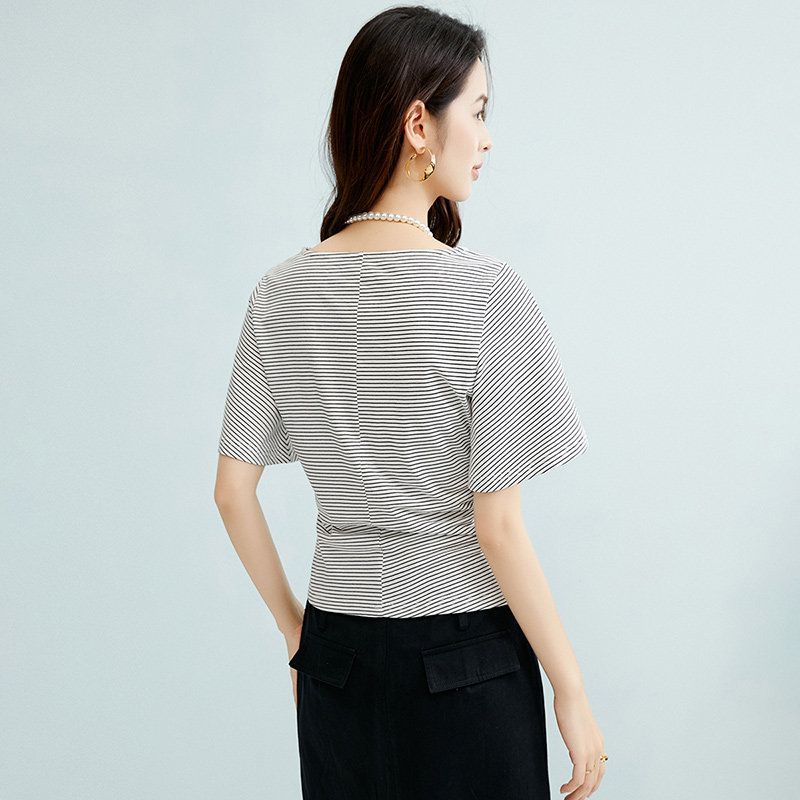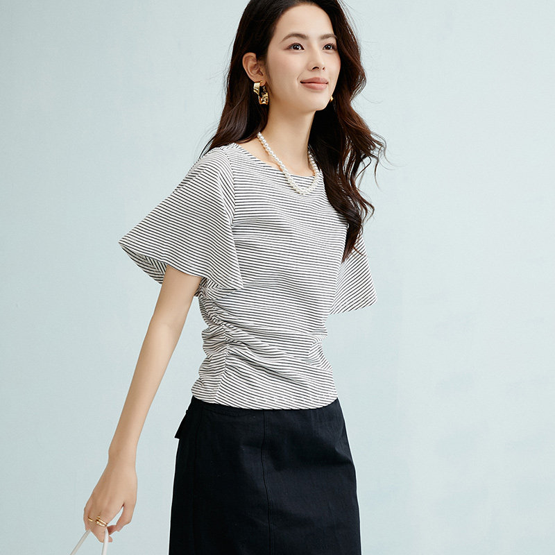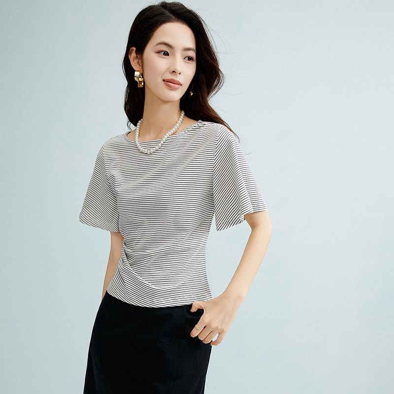 晚白2026年春新款经典条纹棉料短袖简约百搭亲肤舒适T恤衫女