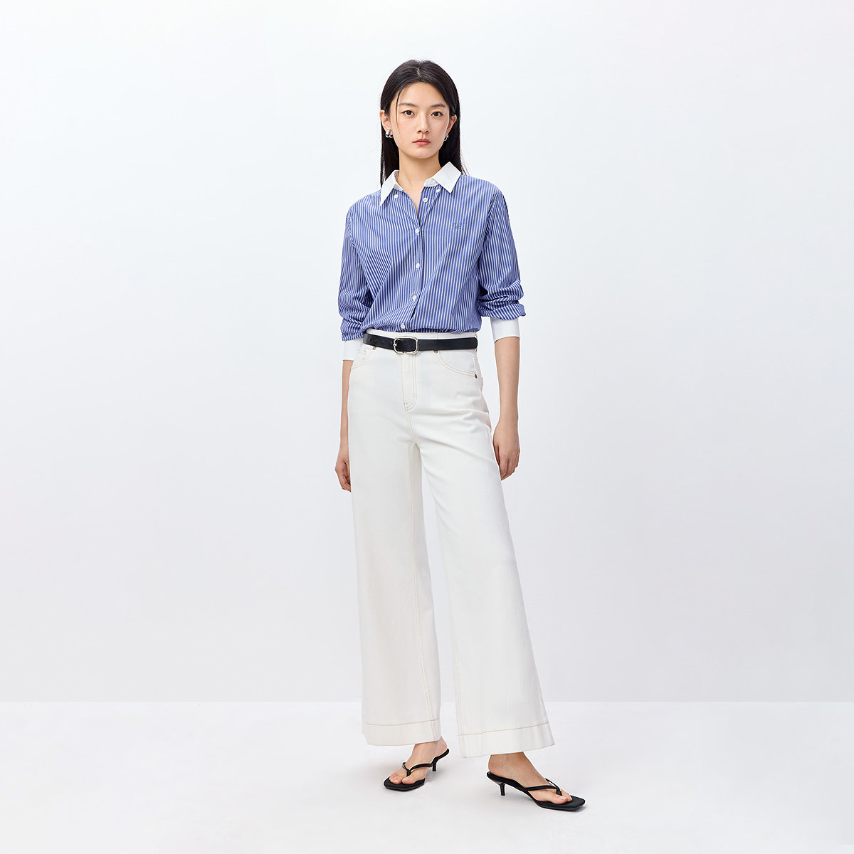 【100%棉】Eland衣恋衬衫女单排扣宽松通勤长袖上衣2025冬季新款