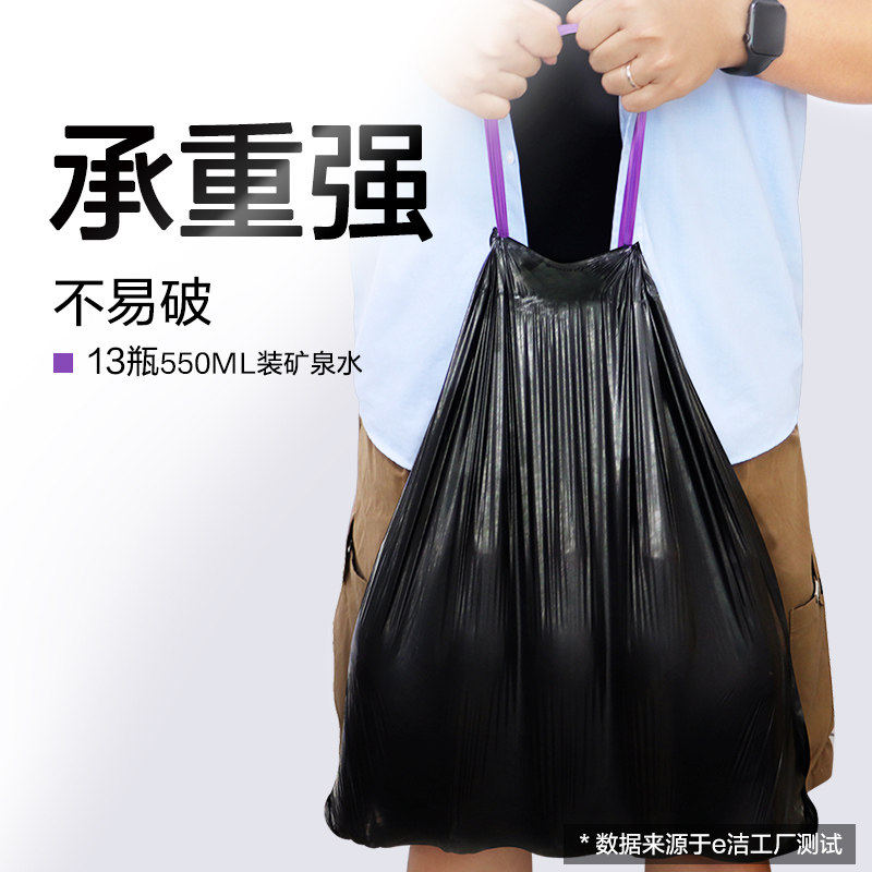 靓涤免撕抽绳式黑色家用垃圾袋加厚手提式收口大塑料袋办公室用