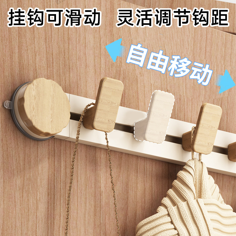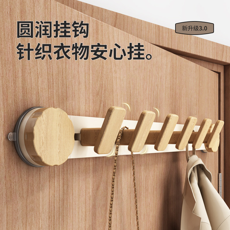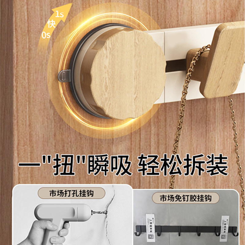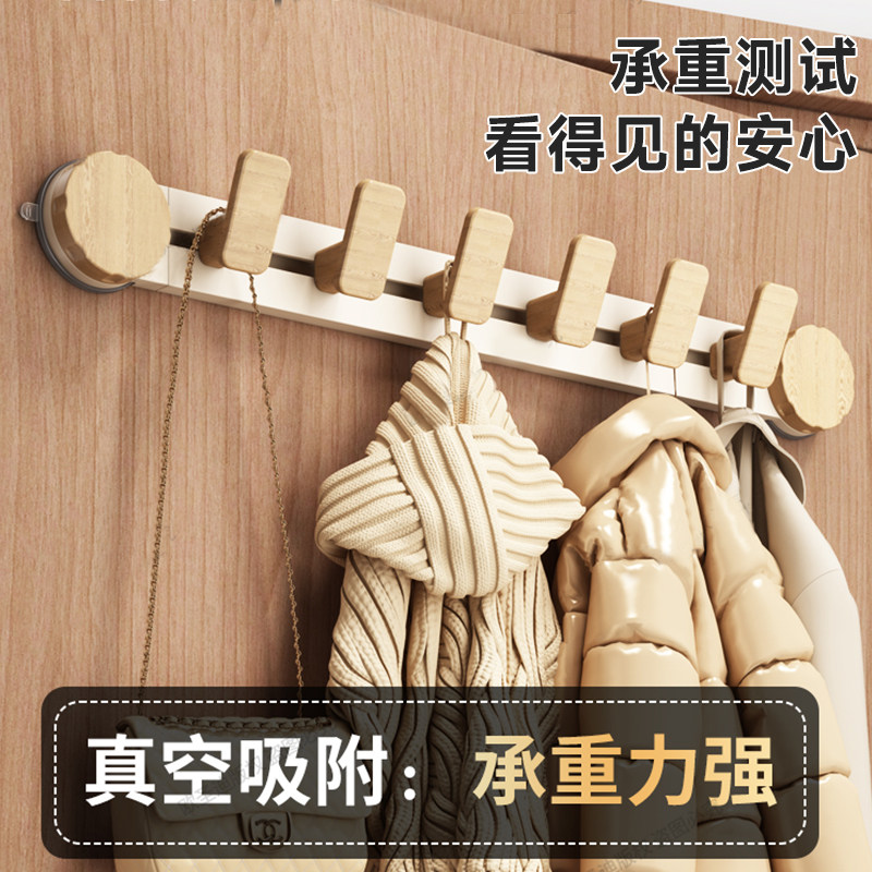 吸盘门后挂钩挂衣架免打孔壁挂钩子入户门卧室排钩收纳架胡桃木