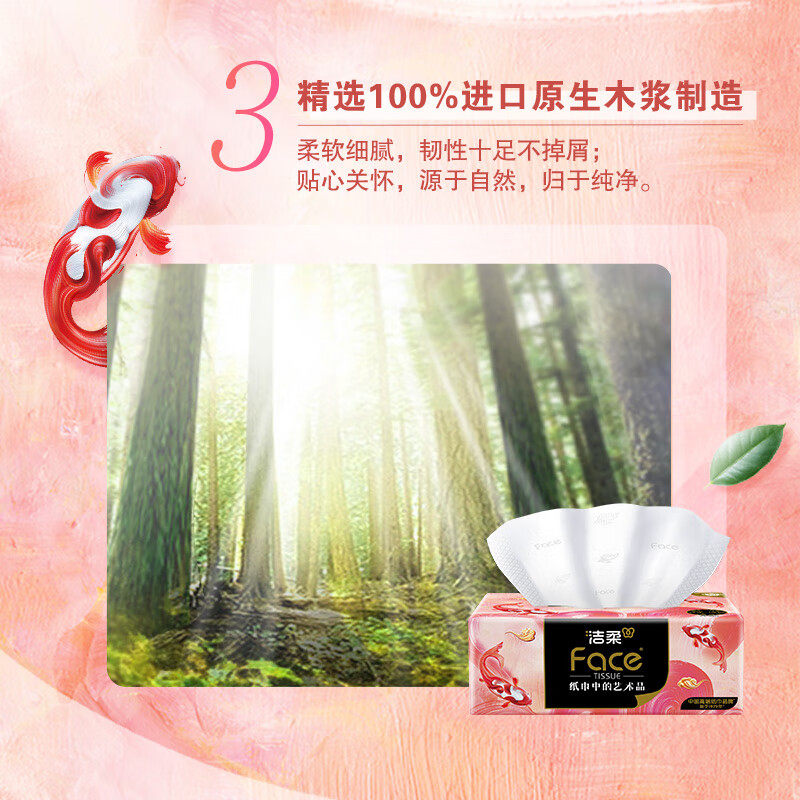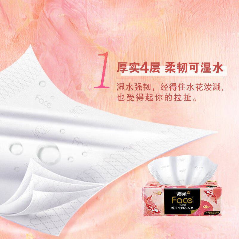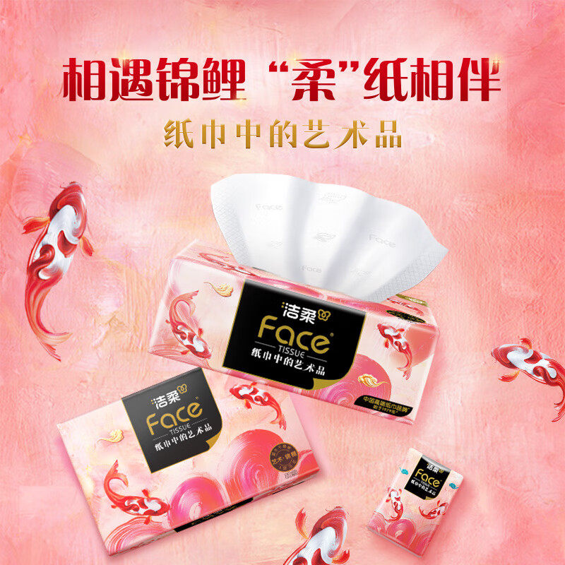洁柔抽纸油画锦鲤4层加厚抽纸面巾纸80抽24包整箱餐巾纸卫生纸巾