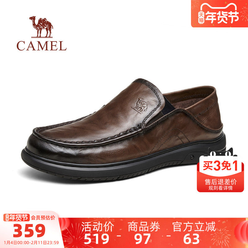 骆驼男鞋2025秋季新款商务软面软底绅士一脚蹬乐福鞋真皮休闲皮鞋