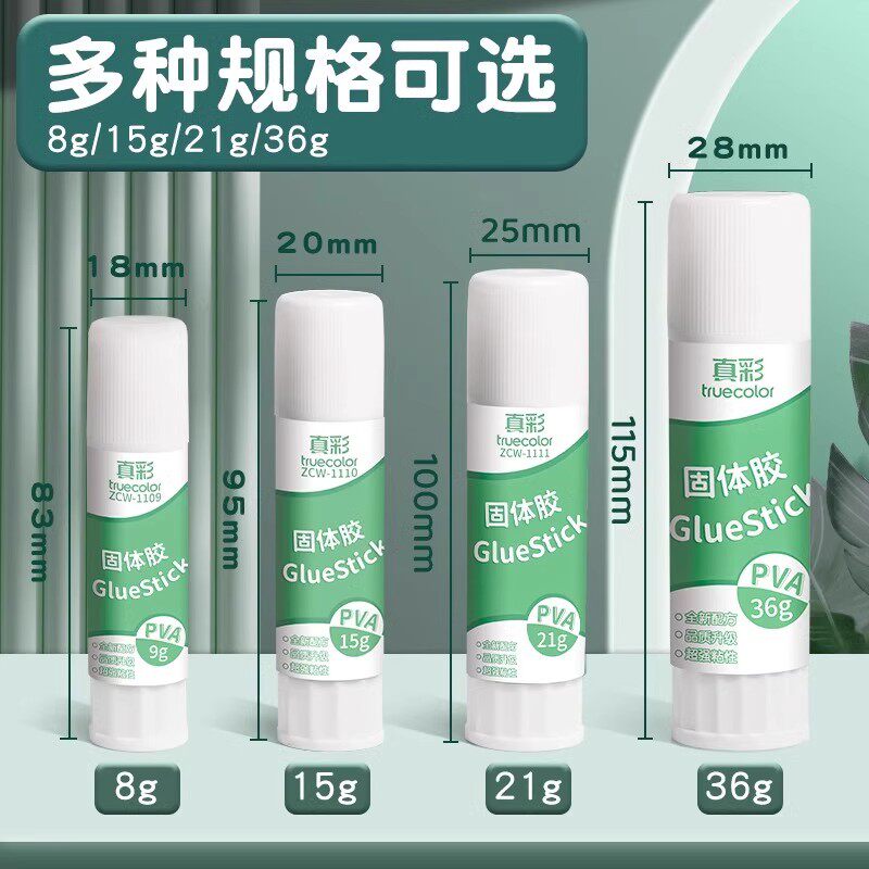 真彩透明固体胶小学生专用固体胶棒笔儿童财务幼儿园手工课强力高粘度无毒文具粘贴12支21克36克大号办公用品