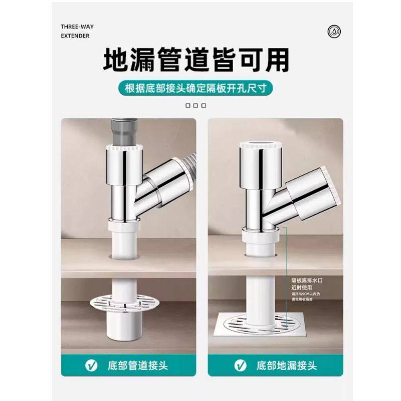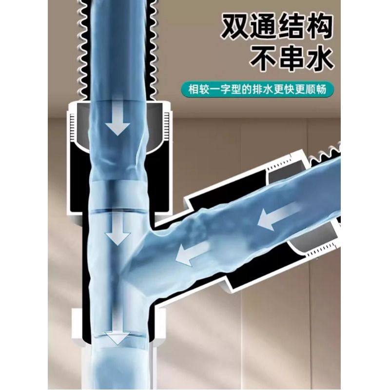 洗衣机下水止逆阀防反水下水管三头通地漏二合一排水管防溢水接头