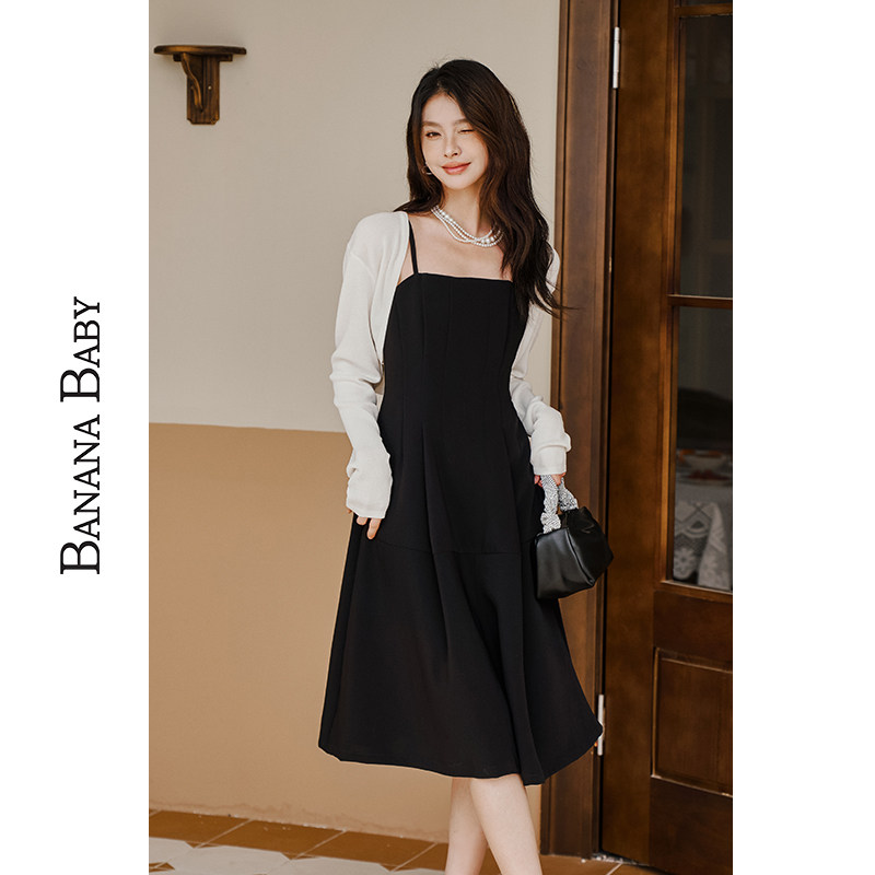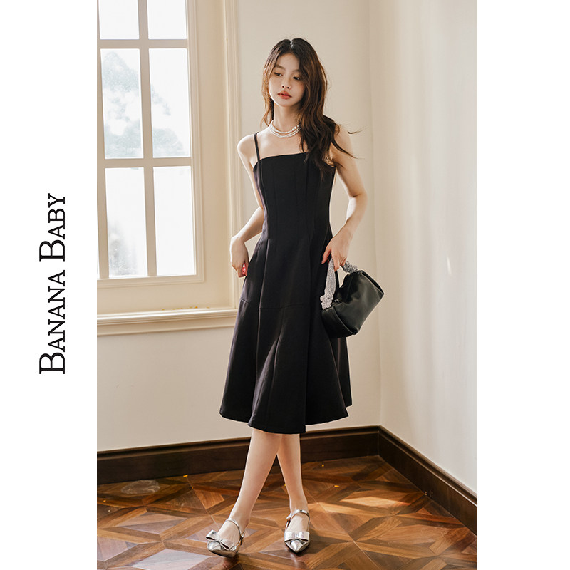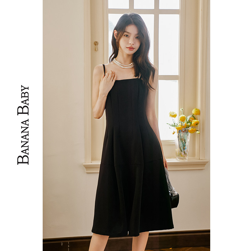 BANANA BABY2025年新款千金风吊带连衣裙女收腰显瘦小黑裙