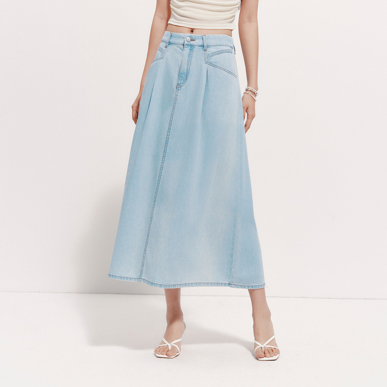 森马牛仔半身裙女夏季凉感A字打褶2026新款百搭简约港风显瘦长裙