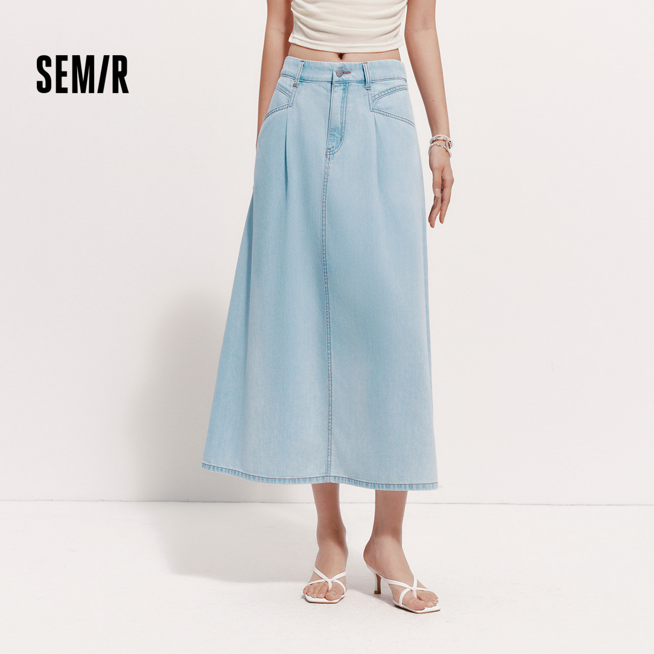 森马半身裙女夏季松紧腰肌理垂感分割A字裙宽松松弛感山本风长裙