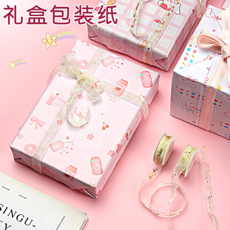 礼物包装纸儿童生日礼物纸打包纸高级感礼盒纸包礼物用书皮可爱七夕花纸包装材料超大尺寸男生女ins风加丝带