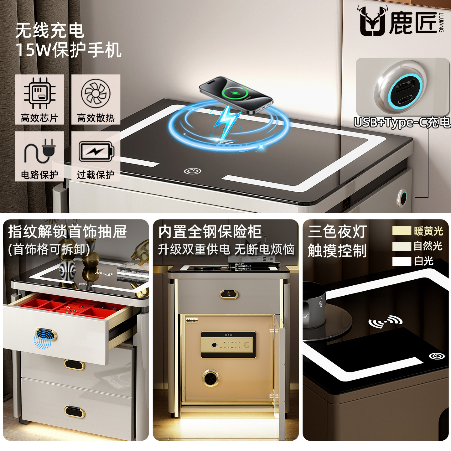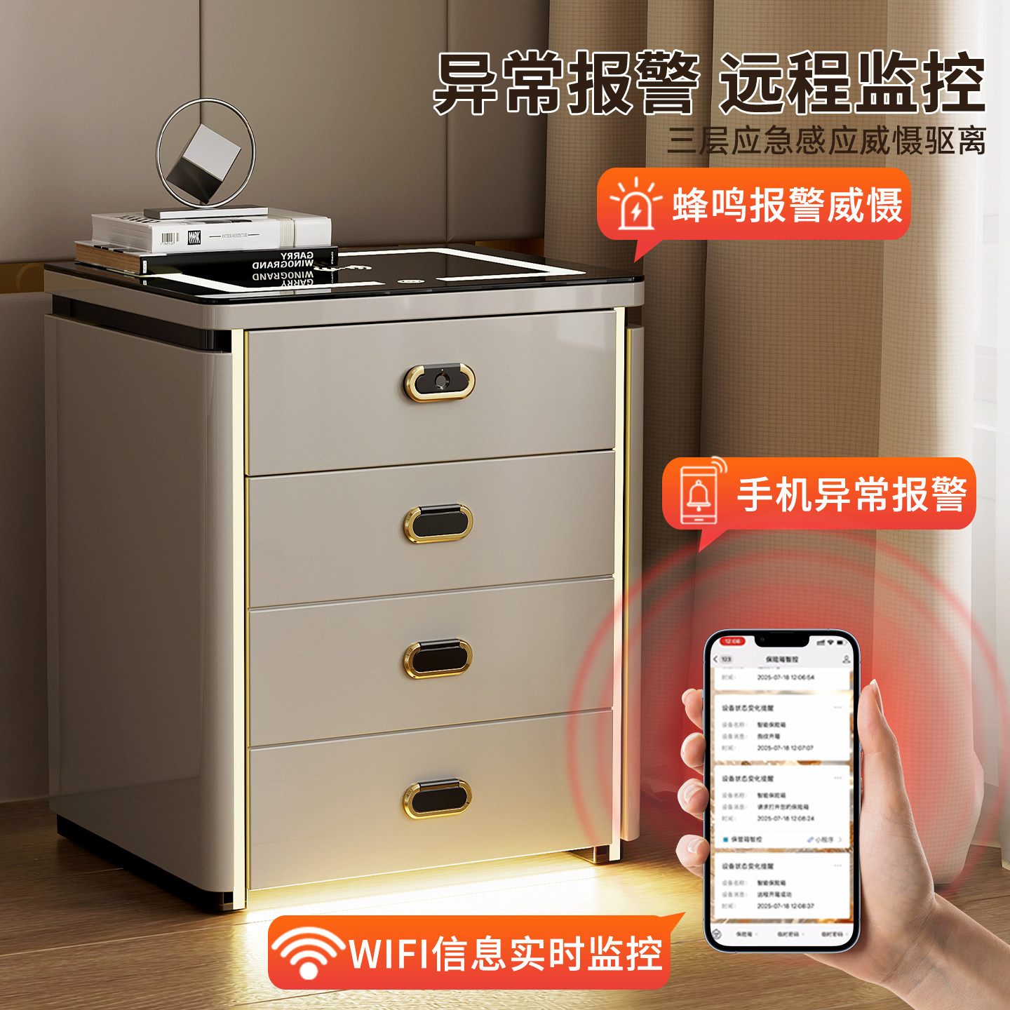 鹿匠床头柜保险柜2026新款一体式家用隐形防盗50cm宽奢华智能四斗柜搬不走人脸识别指纹密码隐藏式保险箱