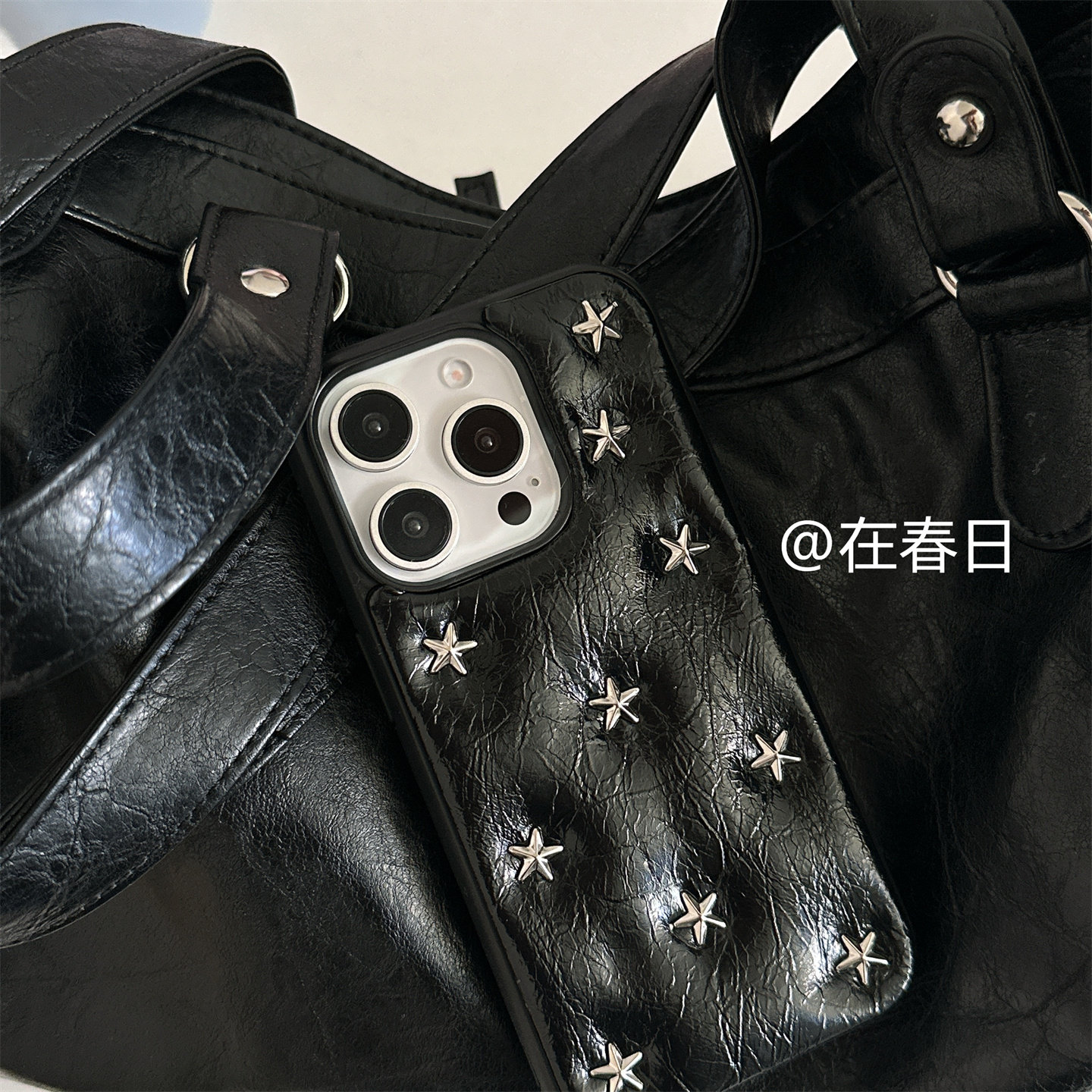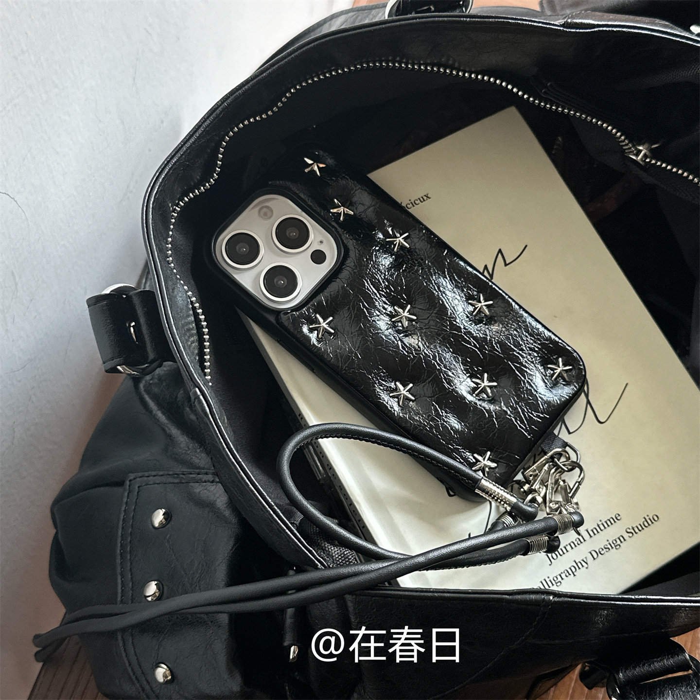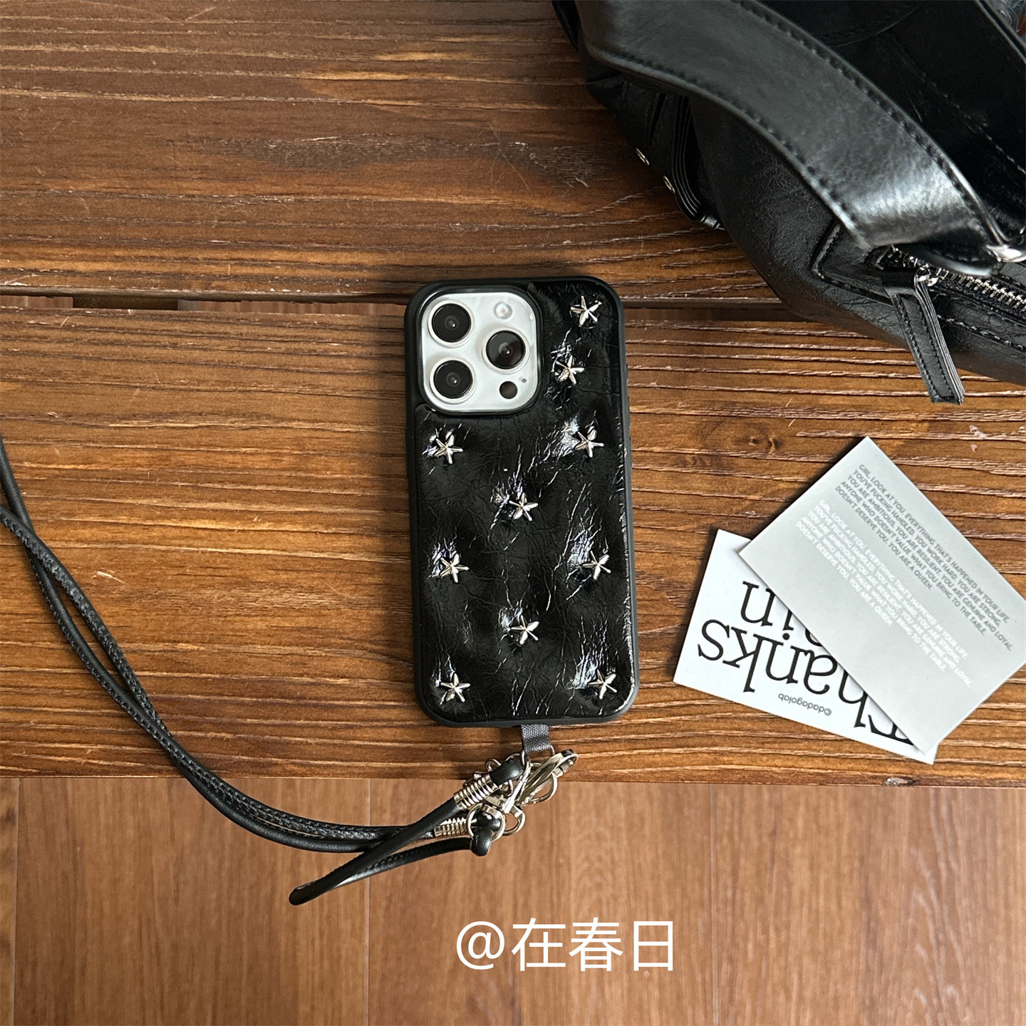 在春日韩国博主同款高级感铆钉星星挂绳手机壳适用于苹果17promax/14小众iPhone15pro女15保护壳16promax/16