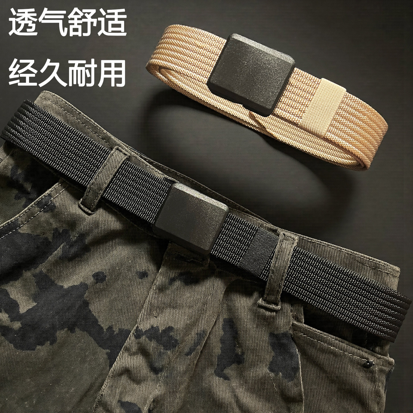 对插扣弹力皮带男自动扣时尚百搭潮流男士腰带户外尼龙帆布裤腰带