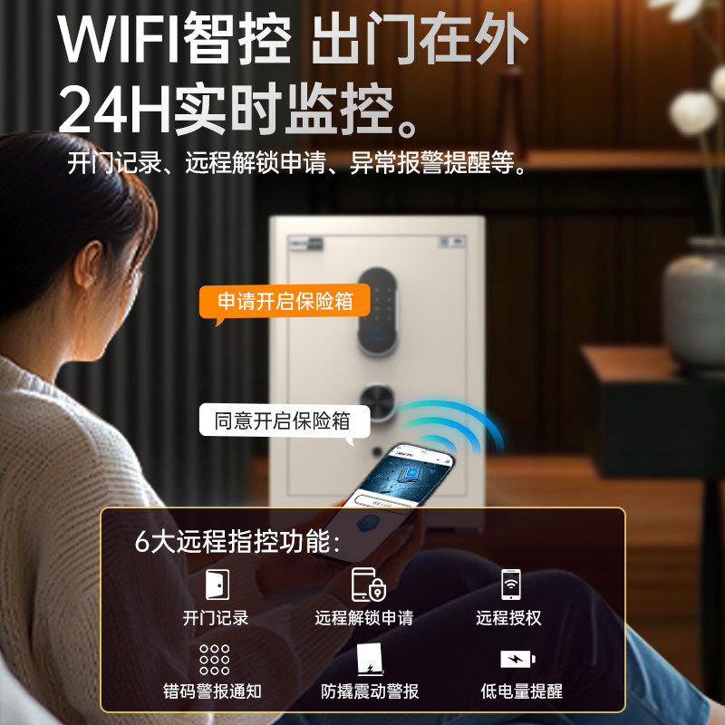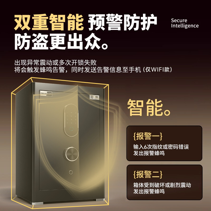 欧奈斯保险柜家用小型45/60cm指纹密码保险箱全钢办公WIFI防盗床头夹万儿童存钱男孩迷你报警保管箱2025新款