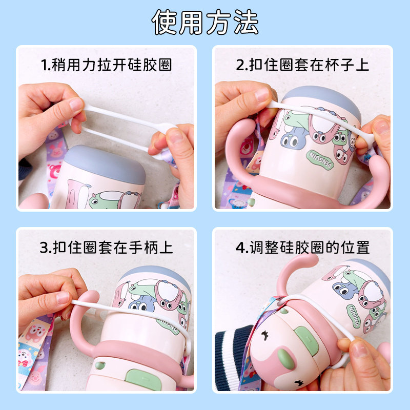 儿童奶瓶背带挂绳babycare水杯挂绳学饮杯手柄杯斜挎挂绳硅胶挂圈