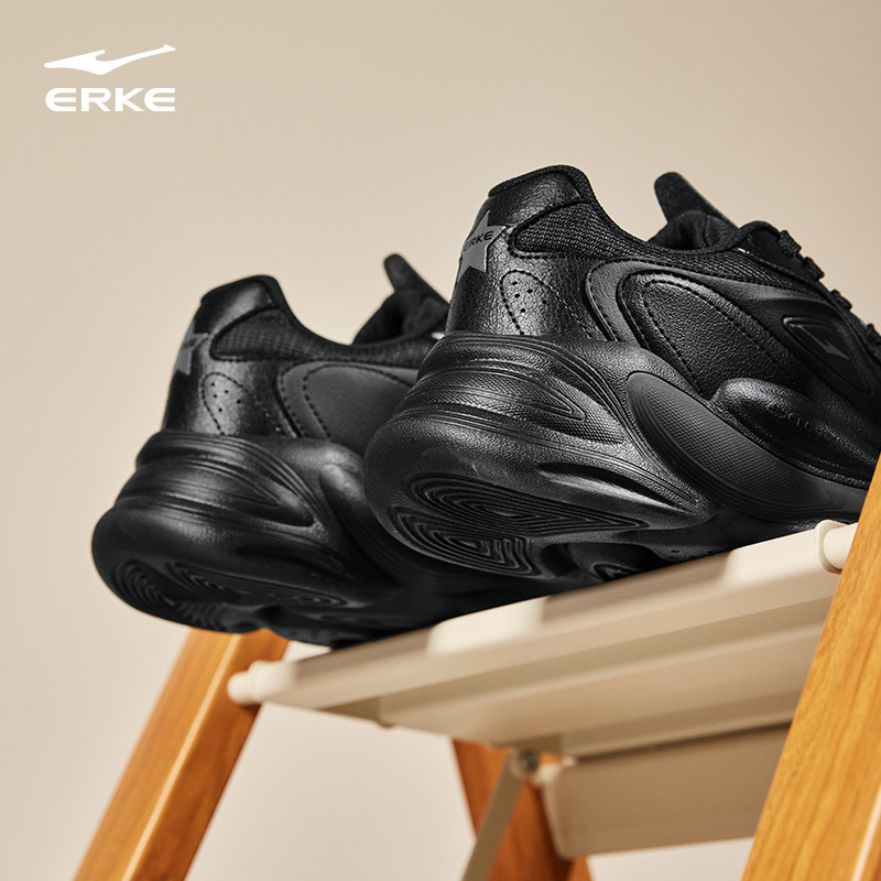 鸿星尔克运动鞋冬季新款男鞋跑步鞋软底跑鞋爸爸休闲鞋中年黑鞋子