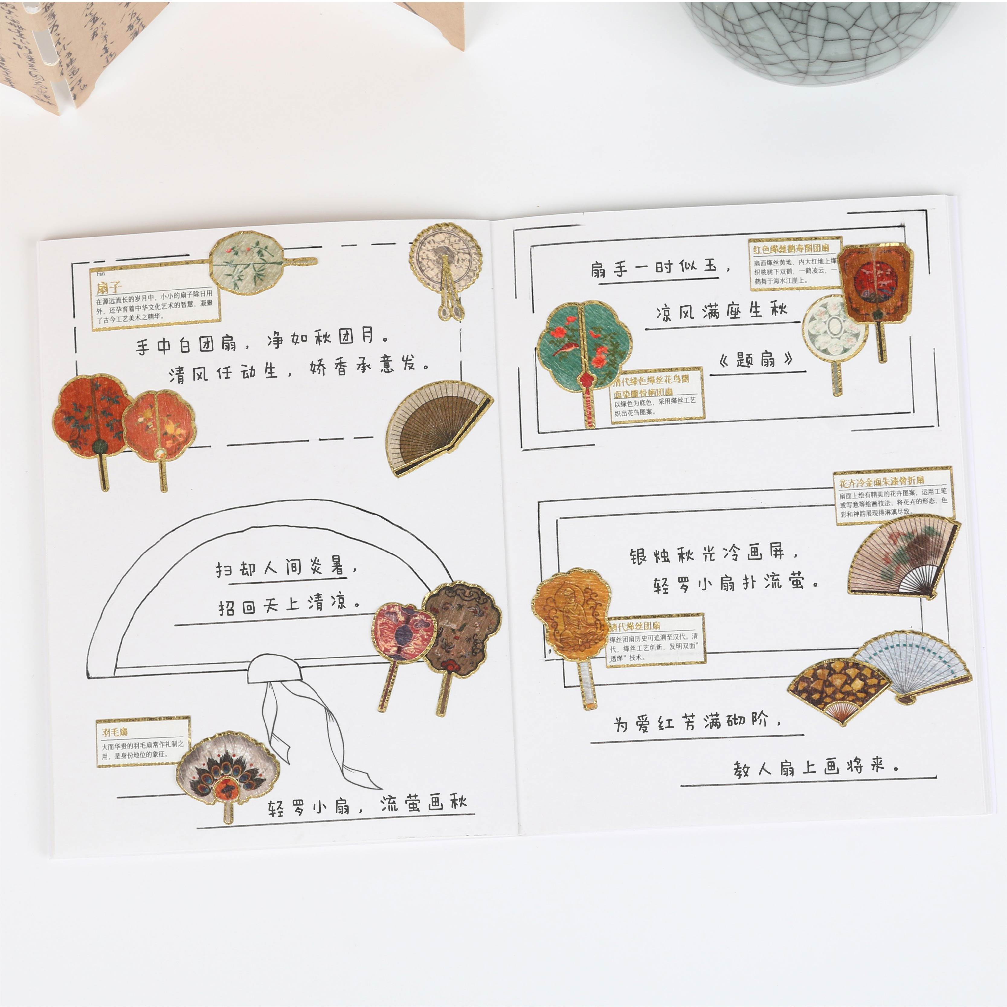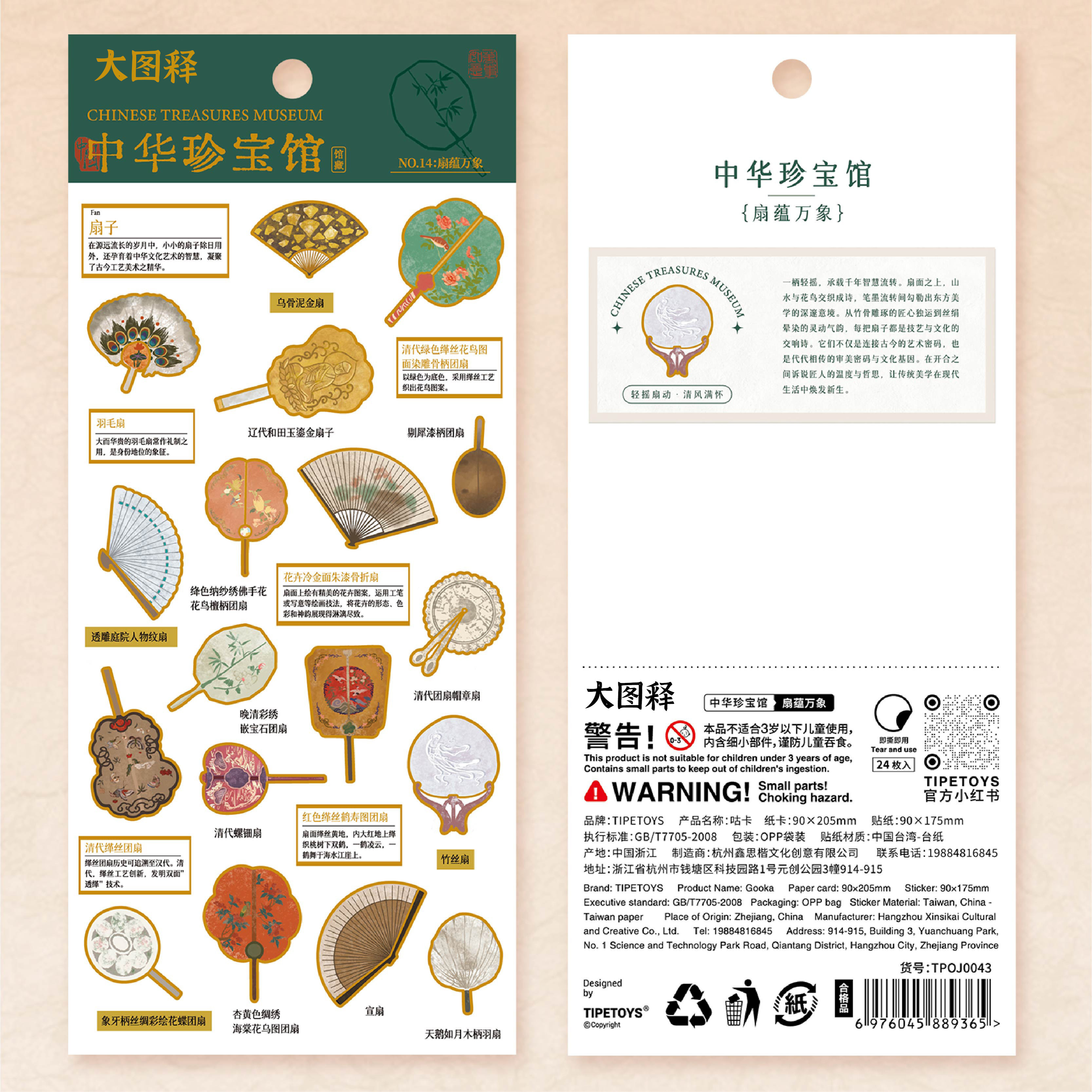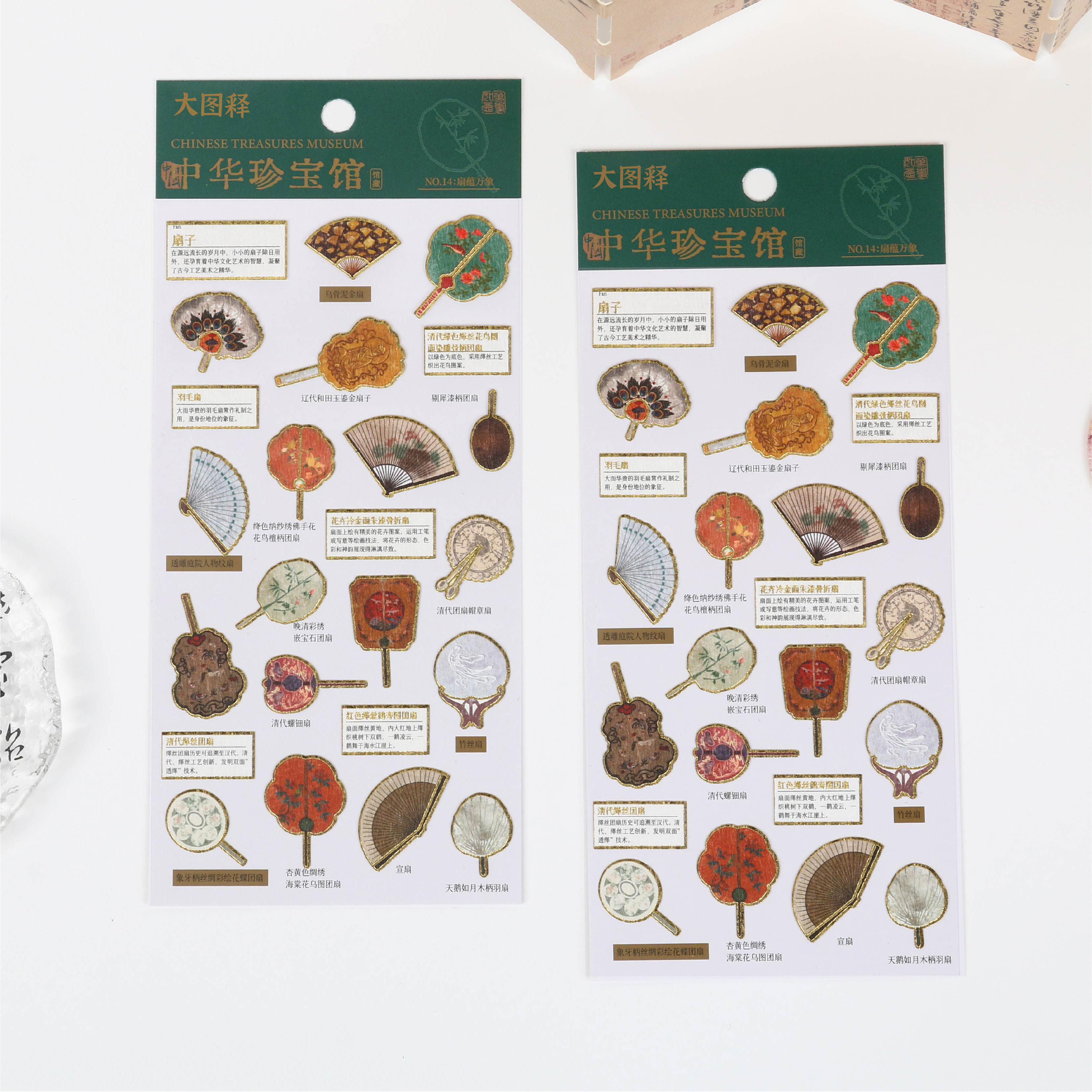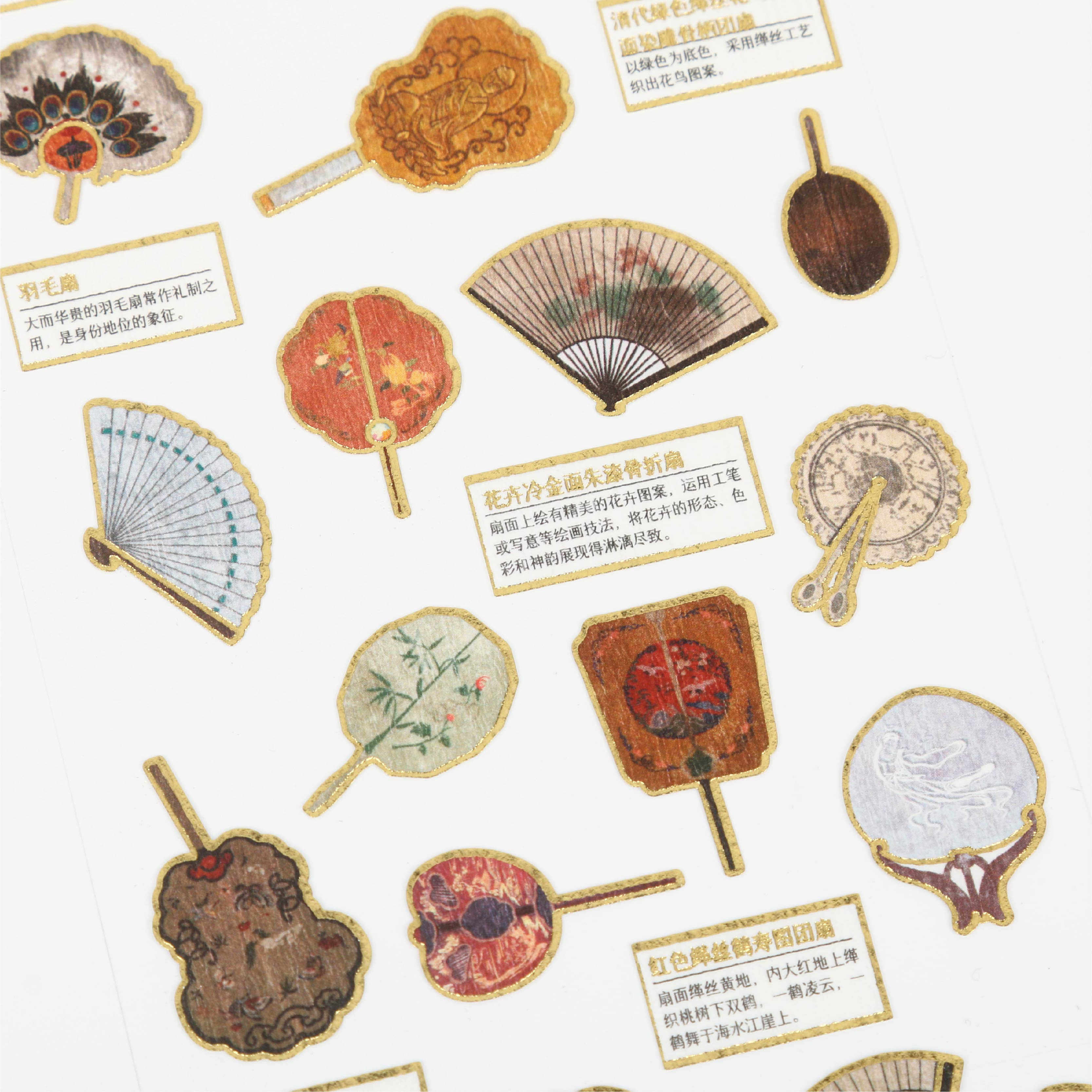 【大图释官方授权】中华珍宝馆文化瑰宝羽毛扇子精美烫金文创周边装饰手账diy自粘中国风小礼品贴画标签贴纸