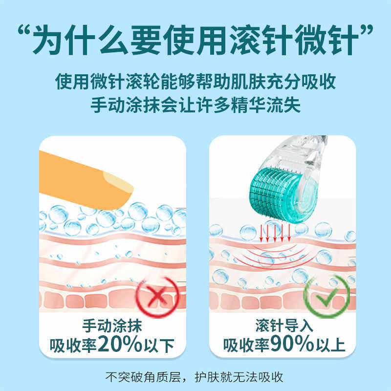 医用滚针米诺微针头皮生长地尔皮肤上滚轮按摩药神器导入水光酊用