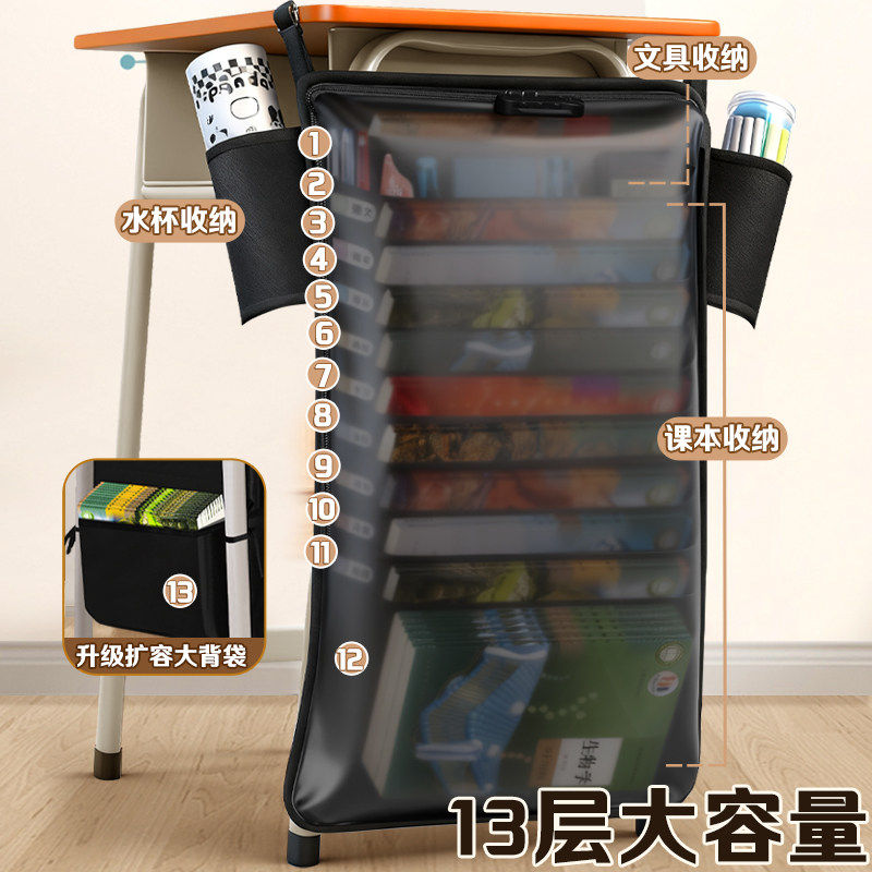 磨砂防尘挂书袋带密码锁高中生书袋课桌收纳学生书桌半透明挂袋侧边置物架书本收纳袋加厚初中生大容量桌边袋