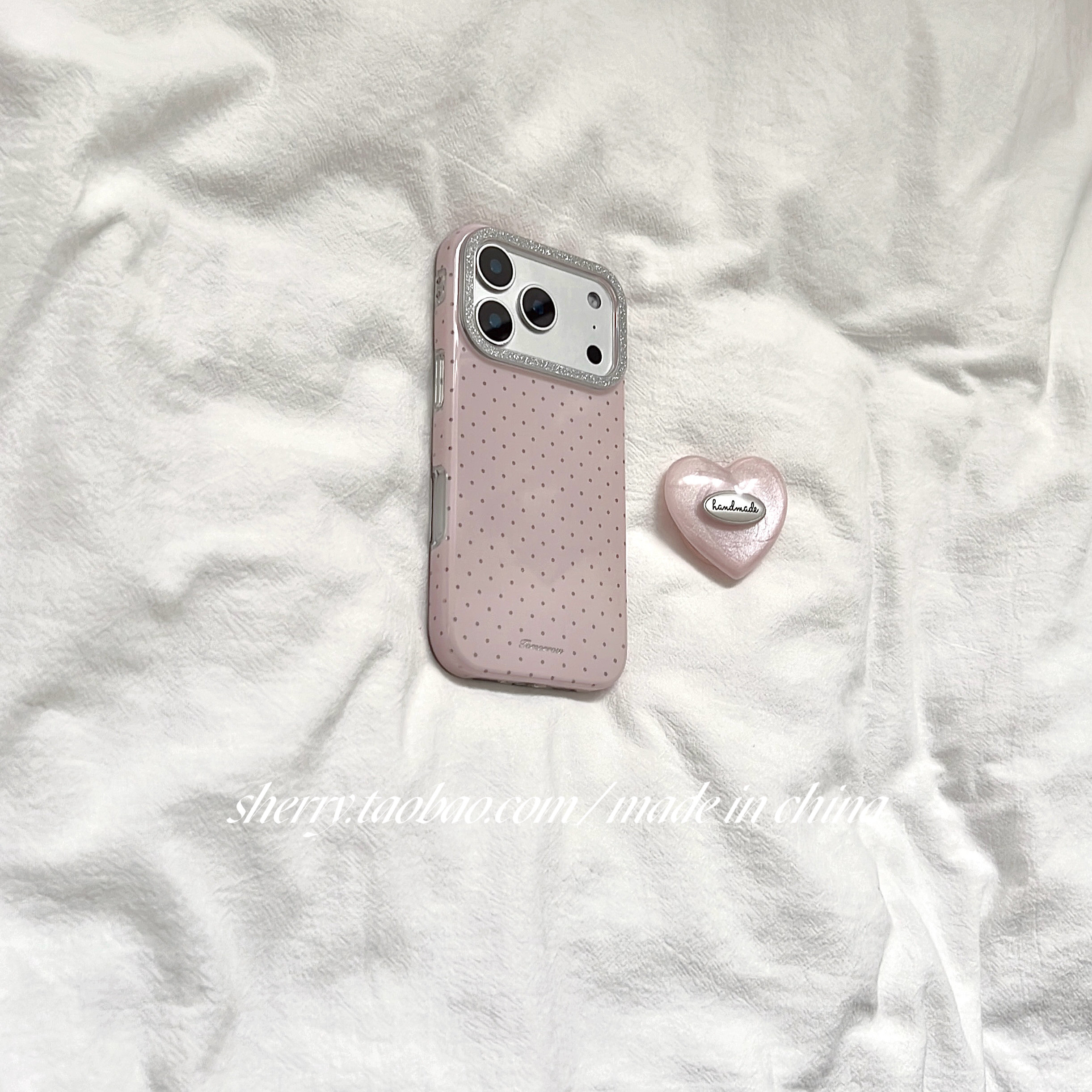 SHERRY*ins风粉色细闪波点爱心支架适用于苹果17ProMax手机壳iPhone16Pro小众少女心15简约14小清新温柔甜美