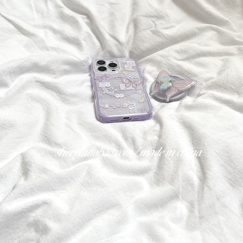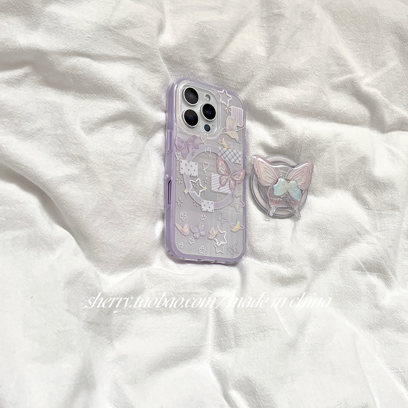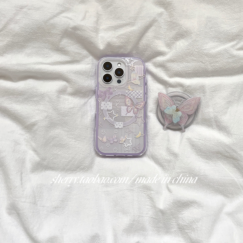 SHERRY*ins风温柔紫色星星蝴蝶磁吸适用于苹果17ProMax手机壳iPhone16Pro小众少女心15简约14清新13卡通甜美