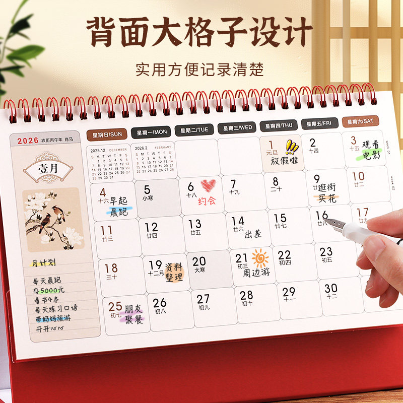 台历2026年新款日历定制logo创意简约小清新韩式办公年历个性中国风桌面摆件商务工作记事计划本订制广告月历