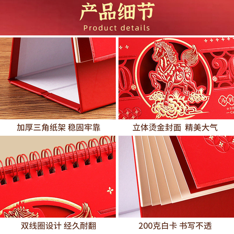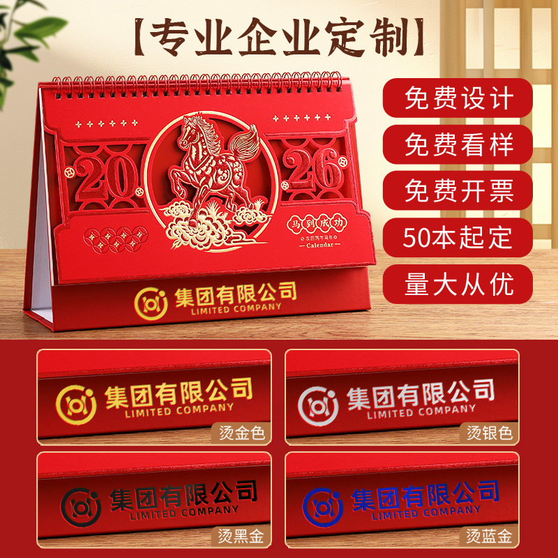 台历2026年新款商务烫金镂空月历马年自律打卡考研计划日历每日工作记事办公室创意桌面摆件公司定制可印logo