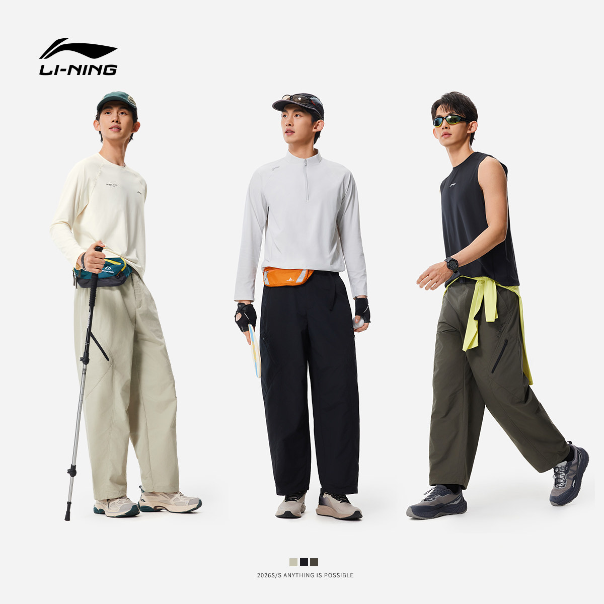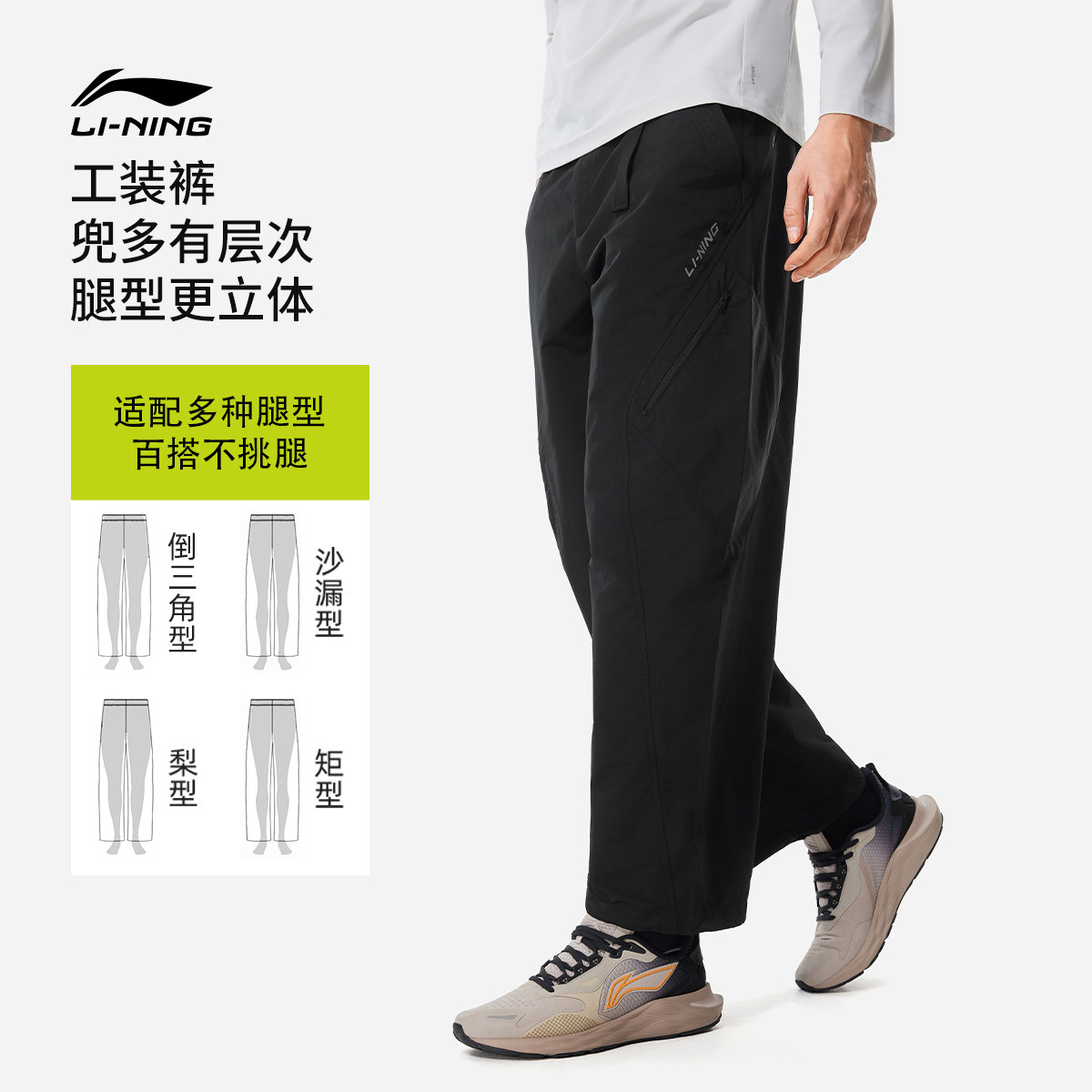 李宁C位裤丨阔腿工装裤休闲长裤男士健身跑步春季直筒梭织运动裤