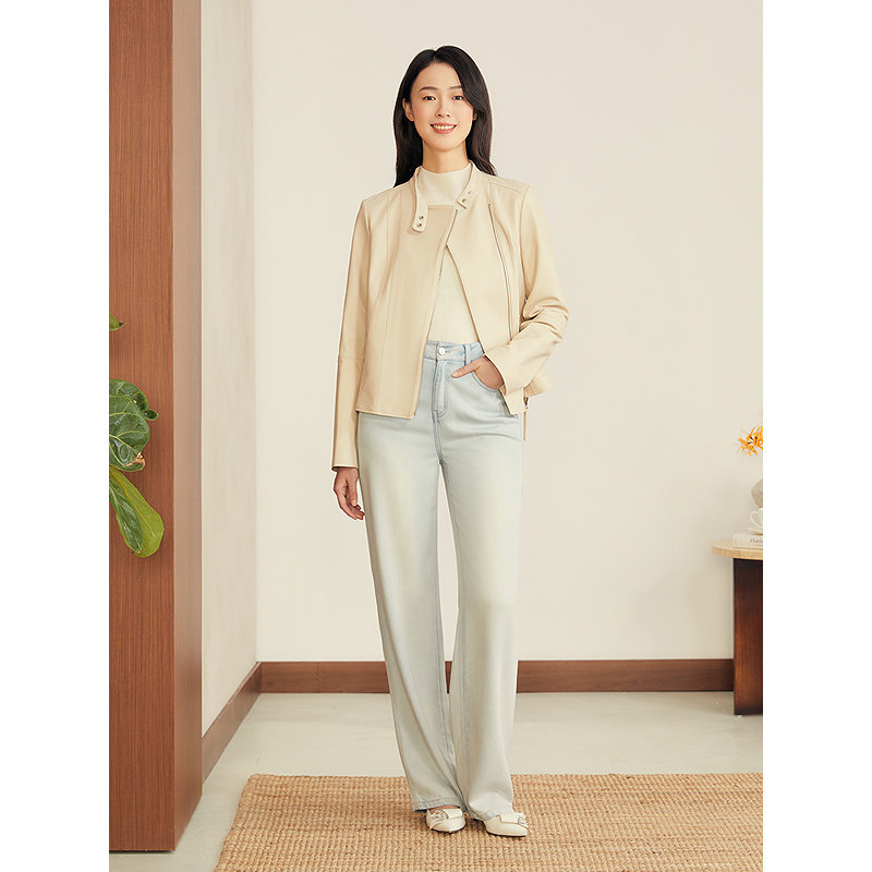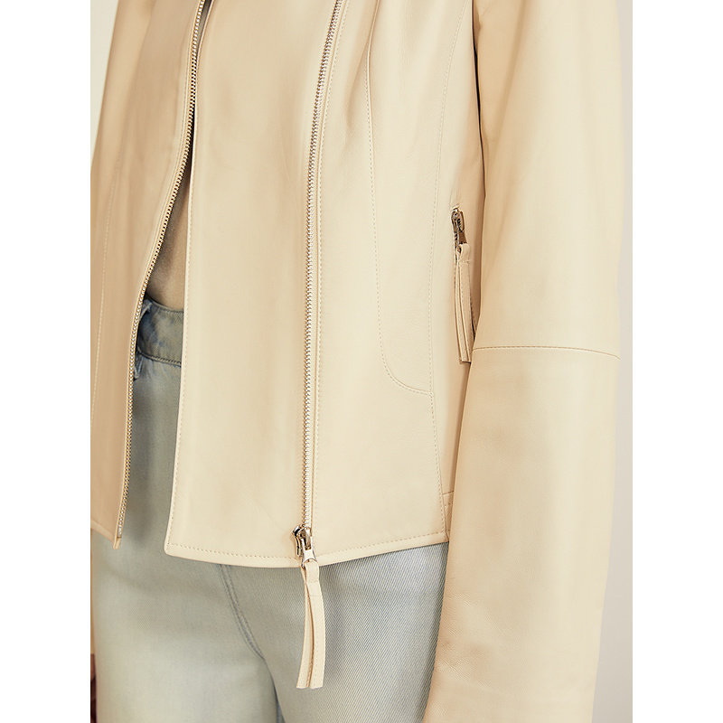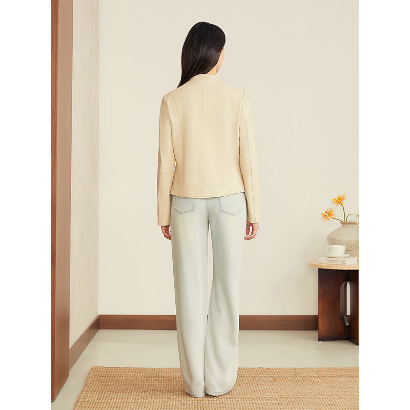 YINER音儿专选2025秋季新款法式短款小立领柔软绵羊真皮皮衣夹克