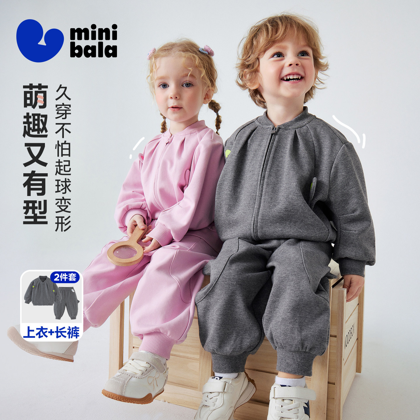 迷你巴拉巴拉男女童套装抗起球防变形儿童长袖长裤春新品2026