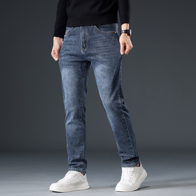 罗蒙冬季牛仔裤男士修身直筒宽松男裤2025新款休闲加绒长裤子男款
