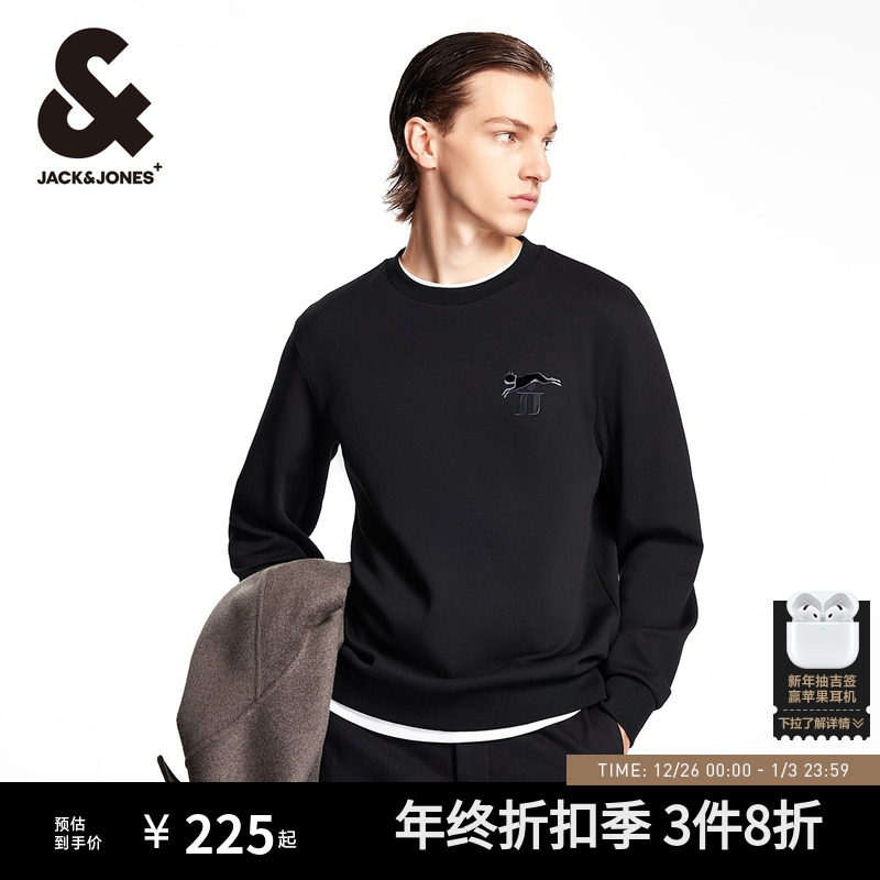 杰克琼斯男装秋冬新款法斗狗刺绣贴布潮流基础舒适圆领长袖卫衣男