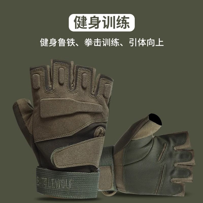 战术健身户外摩托车运动露指手套男无指骑行半指路亚夏季登山防滑