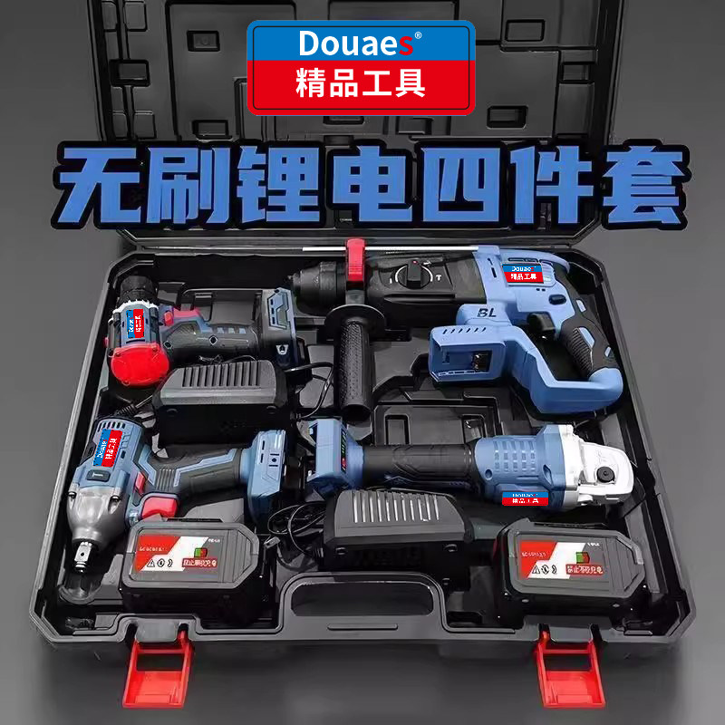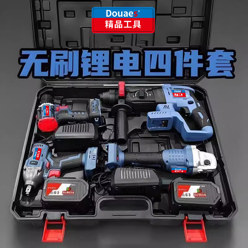 东城款无刷电动工具冲击钻充电电锤角磨机电动扳手电钻四件套装
