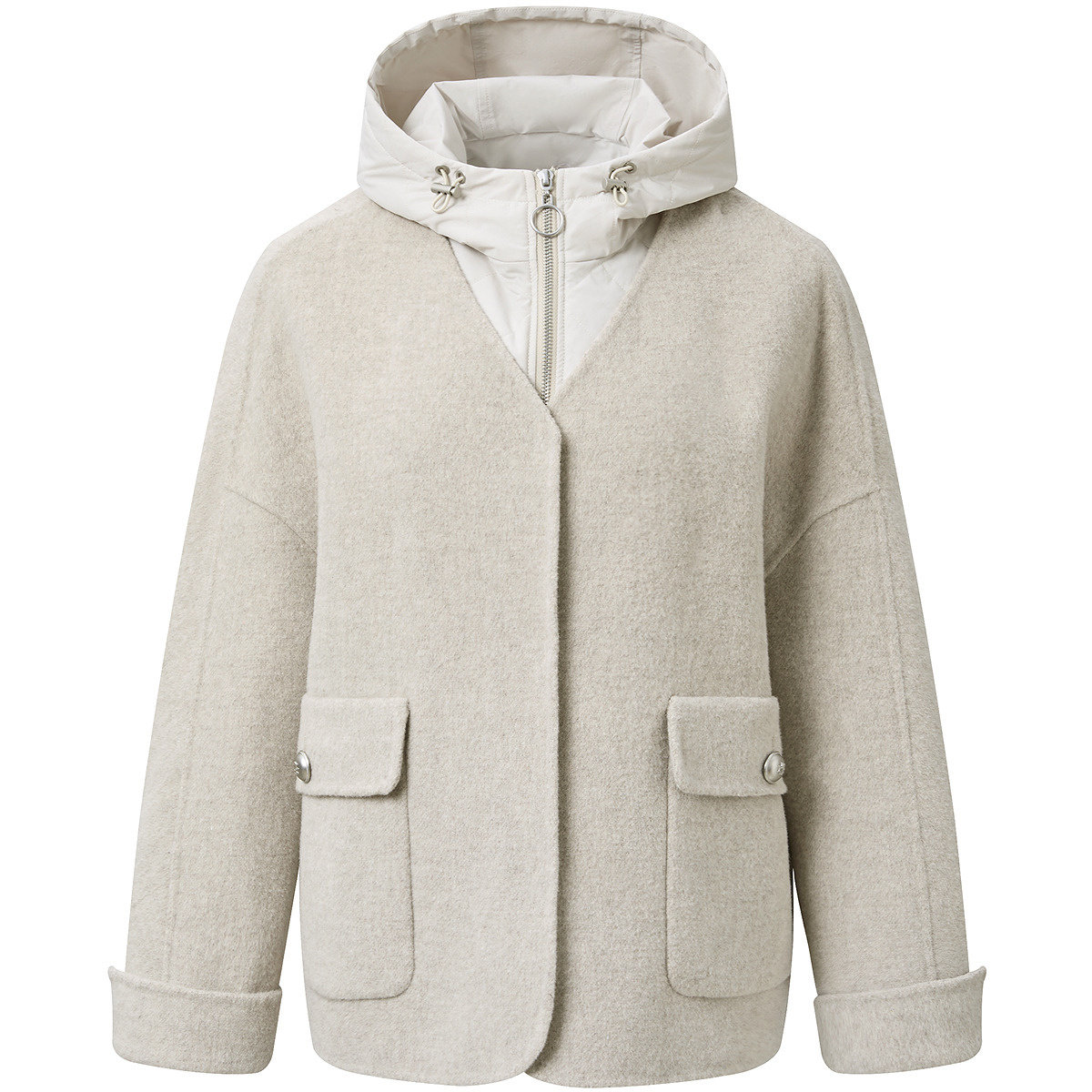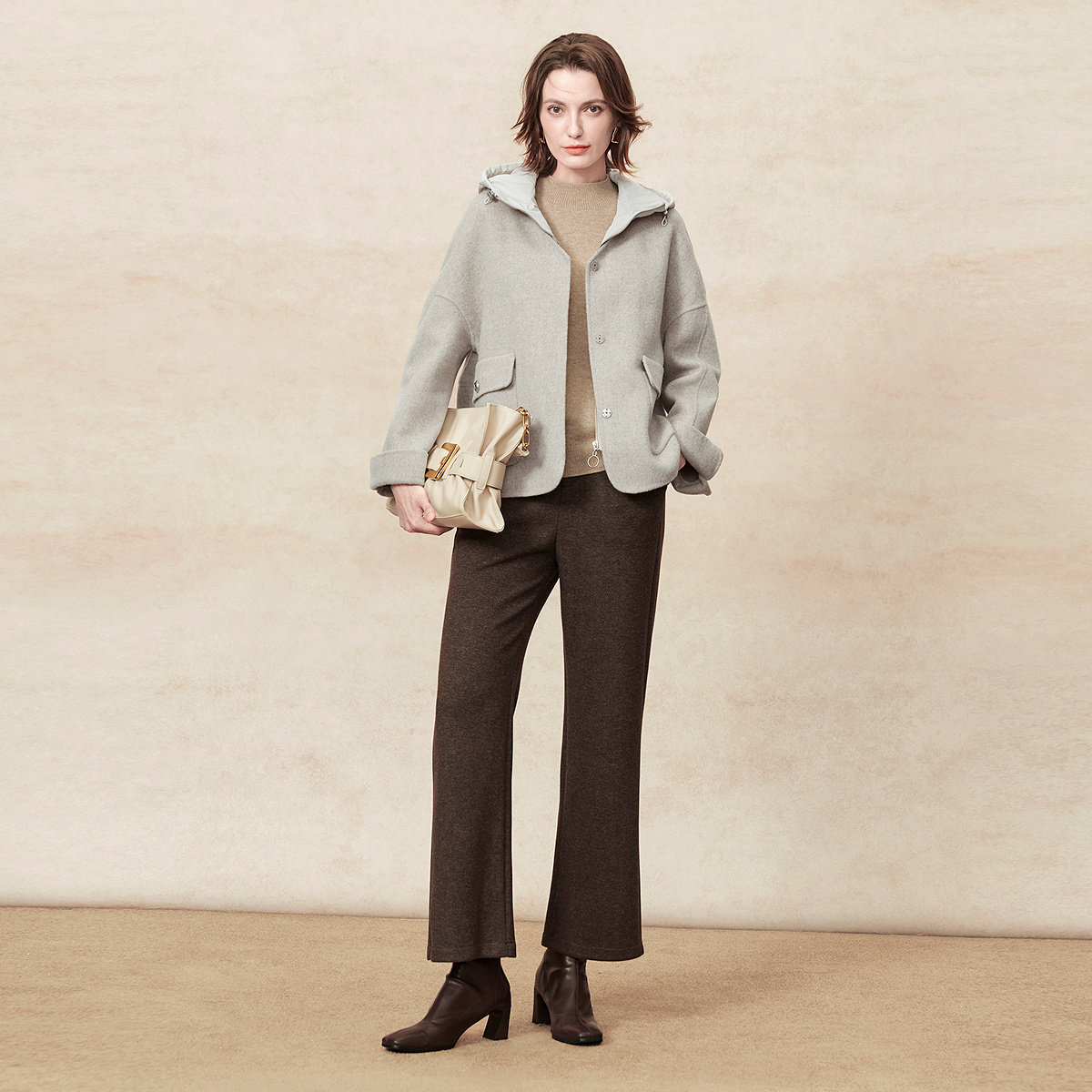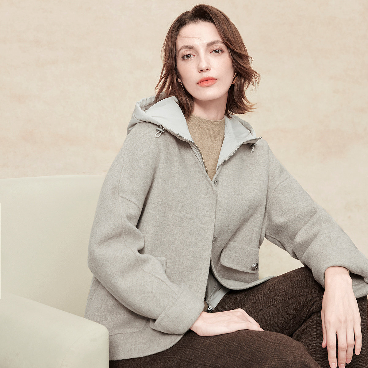 FINITY菲妮迪毛呢外套2025年冬季新款简约连帽双面呢通勤大衣女士